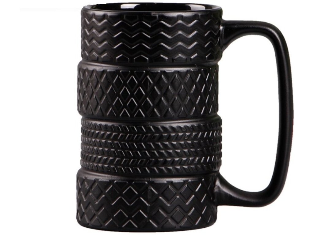 - Keramický hrnek ve tvaru čtyř pneumatik