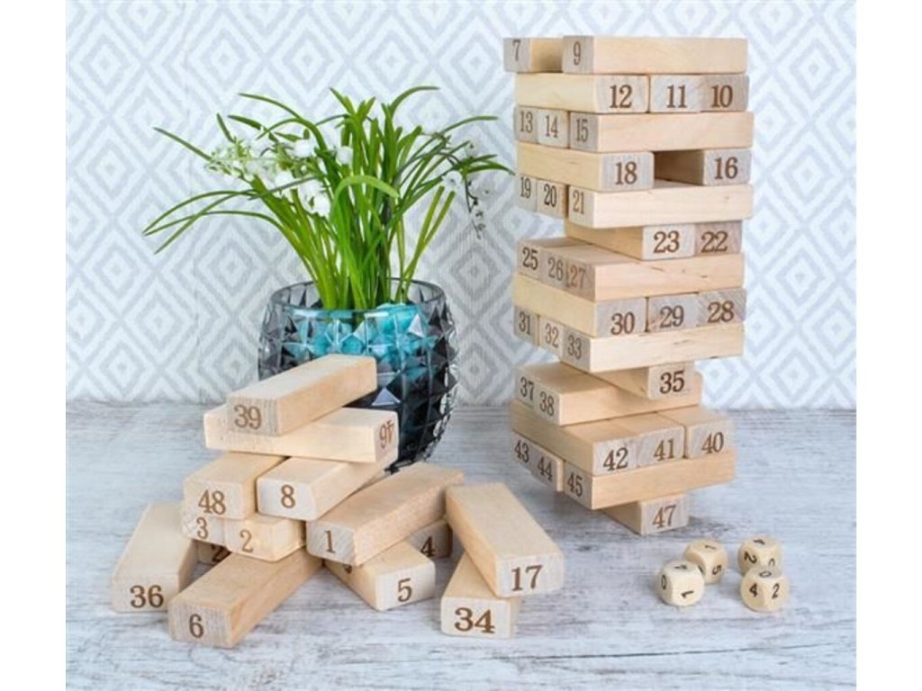 Celosvetovo populárnu hru Drevená veža máte teraz možnosť vyskúšať aj vy so svojou rodinou alebo priateľmi. Vašou úlohou bude postupne vystavať vežu z drevených blokov, pričom sa musíte vyvarovať jej zhodeniu. Komu veža spadne, ten prehráva. Hra Drevená veža je skvelou zábavou pre malých i veľkých, rodiny i partie kamarátov. Predstavuje skvelú príležitosť pre spoločné trávenie voľného času v daždivých dňoch a počas dlhých večerov.