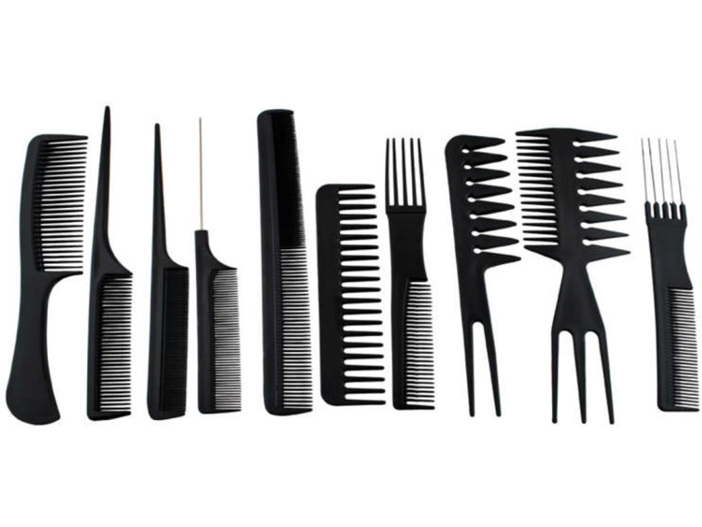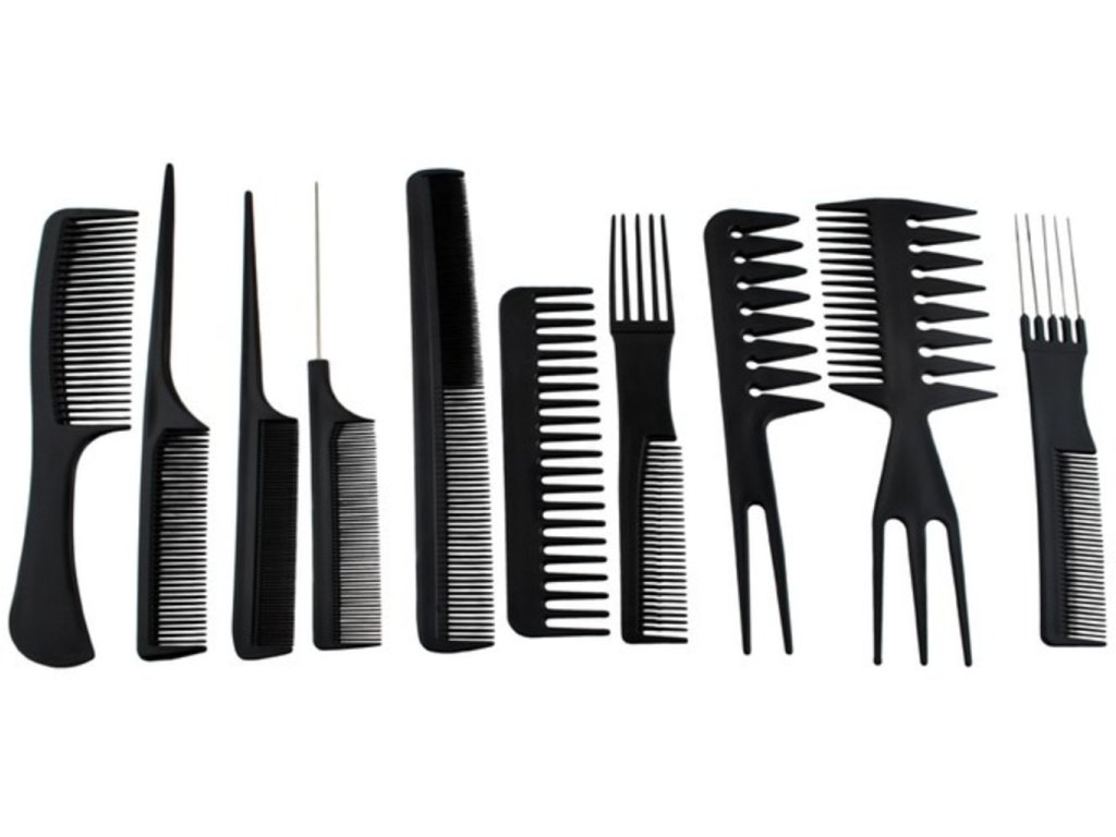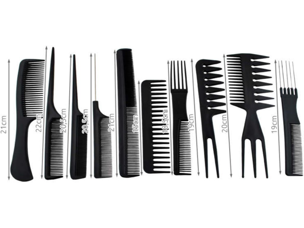 Hľadáte darček pre začínajúcu alebo amatérsku domácu kaderníčku? Predstavujeme vám praktickú sadu desiatich plastových hrebeňov v púzdre, ktorá naplní potreby každých vlasov. Sada obsahuje hrebene s rôznymi rukoväťami a s rôznou hustotou zubov na rozčesávanie, masírovanie či tupírovanie. Vďaka tejto sade sa môžete naučiť čarovať úžasné účesy zo svojich vlasov alebo ju môžete používať v kaderníckom salóne.
