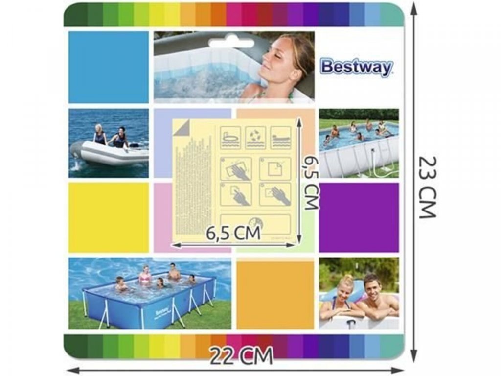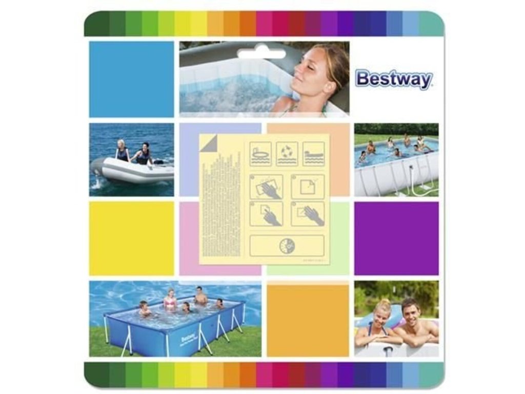 Kúpili ste si nedávno bazén, nafukovačku, koleso alebo set na vodné pólo, možno aj z našej ponuky? Ale pri ich používaní nastal problém, kvôli ktorému nie je možné ďalej používať tieto letné zábavky? Hovorili ste si, že Vám sa to nestane, že si predsa dáte pozor, ale zrazu ste len počuli to puknutie a fučanie? Tak potom nemajte hlavu v smútku, na to je jednoduché riešenie! Bestway 62091 sada záplat na bazén (10 ks) je praktická sada, ktorá zahŕňa 10 kusov záplat, ktoré môžete využiť na bazény, nafukovacie ležadlá, kolesá a iné nafukovacie atrakcie, vďaka ktorej je rýchlo po probléme.