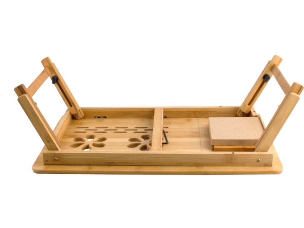 Ste Itčkárom celým srdcom a celou dušou a neviete zaspávať bez počítača? Vláčite ho so sebou stále kamkoľvek sa pohnete a v posteli má tiež popredné miesto? Alebo ste vášnivým hráčom a na kvalitný spánok potrebujete vyhrať zopár hier? Zháňate nejaký stolík, kde by ste si mohli počítač pohodlne položiť a nemuseli sa tak krčiť a krútiť? Stolík na notebook do postele bambus je potom niečo pre Vás! Je vhodný pre notebooky do 15 palcov a má niekoľko možností naklonenia, pre Váš absolútny komfort. Dajte navždy zbohom bolestiam chrbta a krčnej chrbtice!