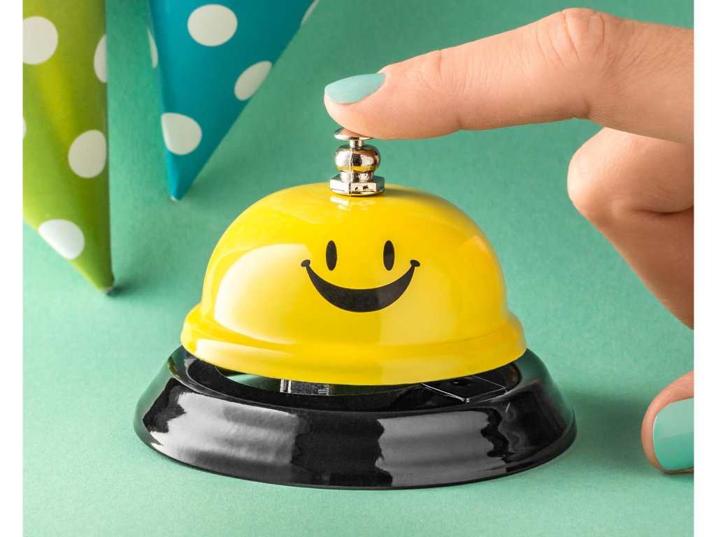 Niekedy stačí malý zvuk, aby sa zmenil celý deň. Tento veselý žltý zvonček s potlačou smajlíka je tu pre všetkých, ktorí neberú život príliš vážne. Funguje ako okamžitý „generátor úsmevov“ – doma urobí radosť deťom, v práci zasa odľahčí napäté porady. Je vyrobený z odolného kovu, takže vydrží toľko radosti, koľko len unesiete. Prineste si domov kúsok optimizmu, ktorý je počuť!
