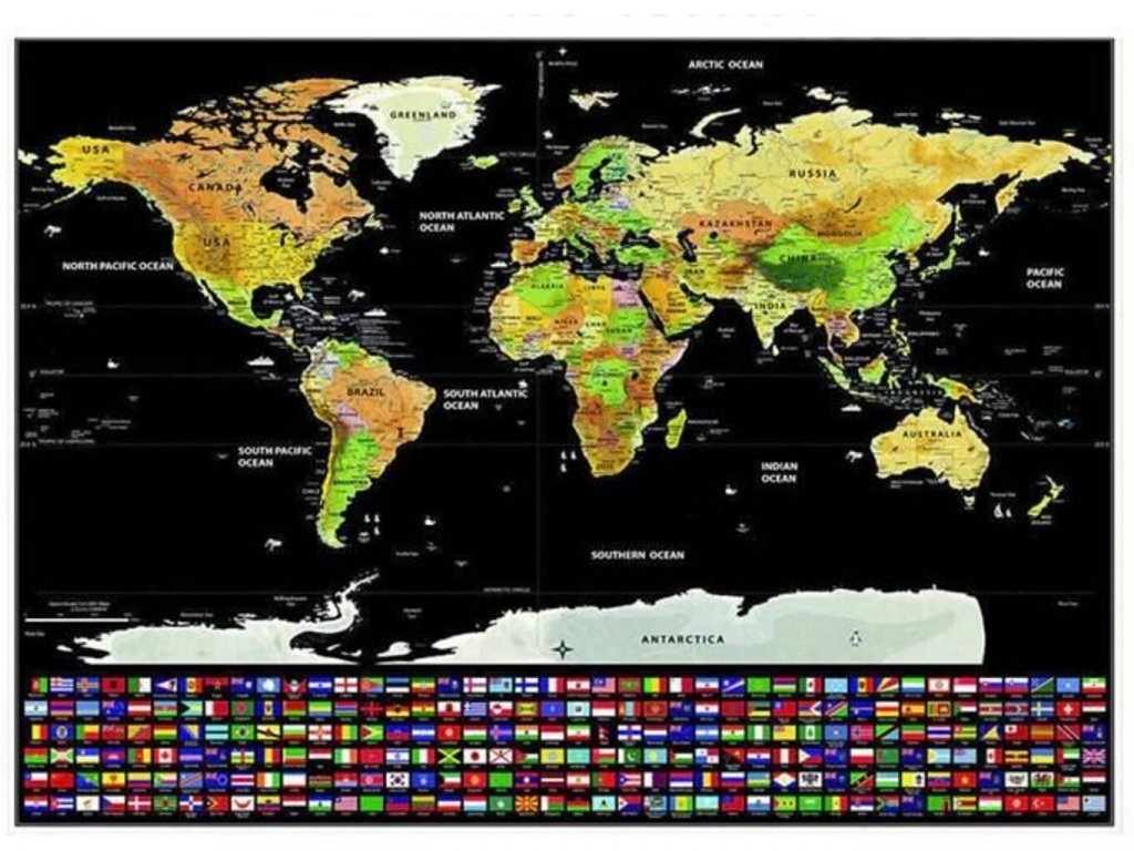 Veľká stieracia mapa sveta s vlajkami Deluxe 82 x 59 cm bez príslušenstva