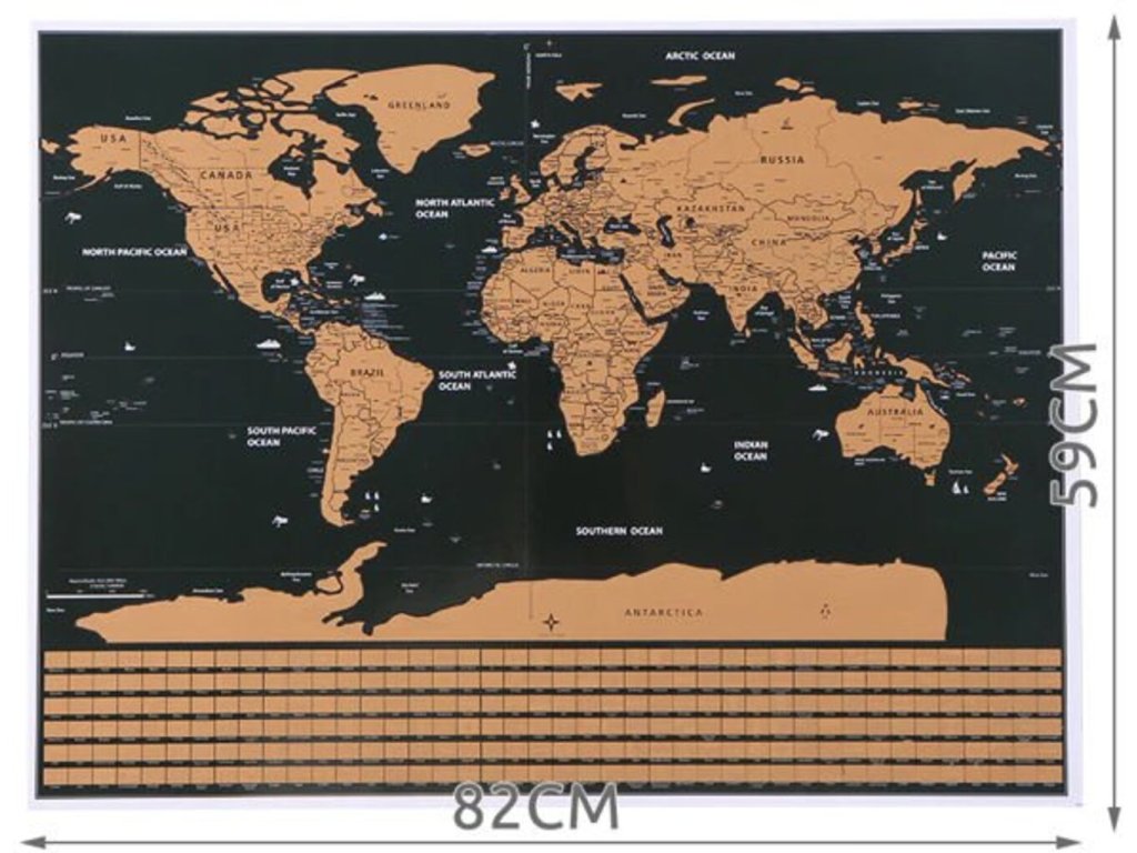 Papier, z ktorého je stieracia mapa vyrobená, je prvotriednej štruktúry a jeho kvalita je veľmi vysoká. Pri zotretí konkrétnej časti tak nehrozí riziko poškodenia papiera. Vďaka elegantnému a zároveň klasickému štýlu sa mapa zmestí a vynikne v každom interiéri. Zlatý povlak je možné zotrieť pomocou špeciálnej škrabky/ pomôcky, ktorá je pribalená v tejto sade alebo môžete použiť mincu či kľúč ako pri vvýhernom žrebe. Po zotretí vyčistite mapu pomocou štetca a očistite ju od zvyšku povlaku. Zotrite na mape tie miesta, ktoré ste navštívili, a vytvorte tak na stene jedinečný obrázok! Ide o perfektný spôsob , ako zachytiť cestu po svete a naplánovať si budúce výlety.