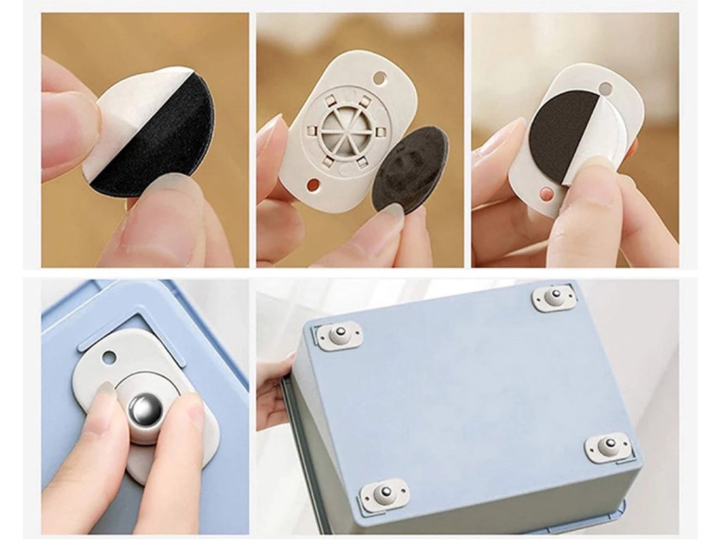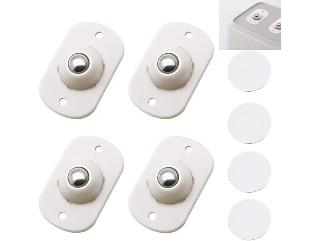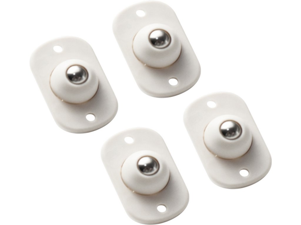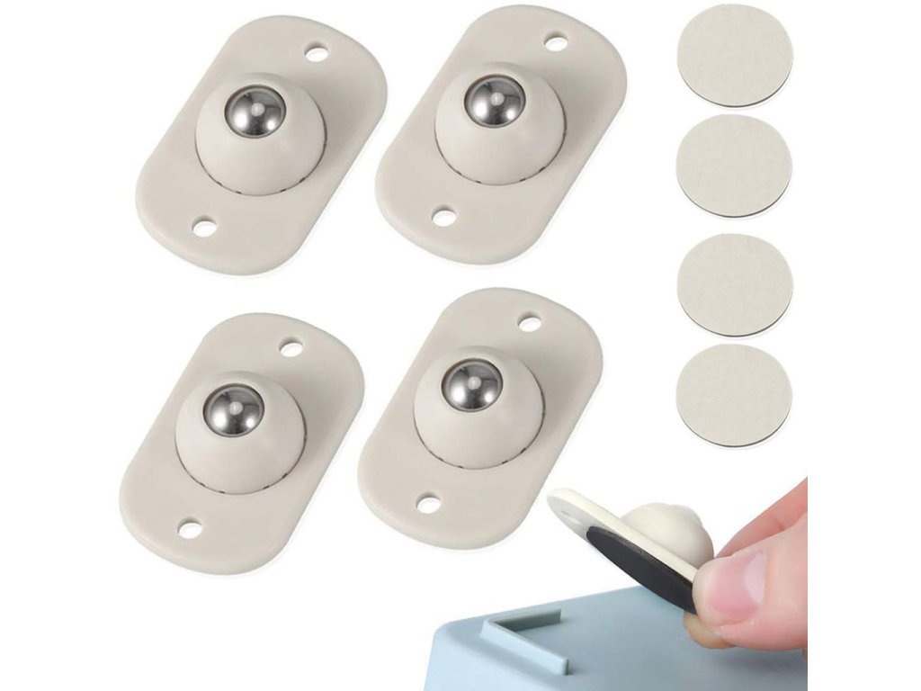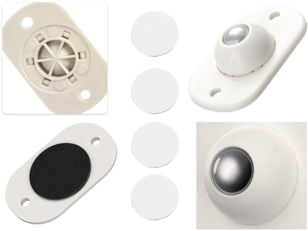 Univerzálne kolieska na nábytok , kontajnery, boxy, rôzne typy úložných priehradiek, odpadkové koše atď.. Otočné kolieska vám umožnia plynulo premiestňovať rôzne predmety, bez toho, aby ste poškrabali podlahu alebo skrinky . Nepoškriabu a nezanechávajú žiadne stopy na povrchu. Kolesá sú pripevnené obojstrannou páskou. Majú tiež otvory na skrutkovanie. Otáčanie koliesok je presné a tiché.