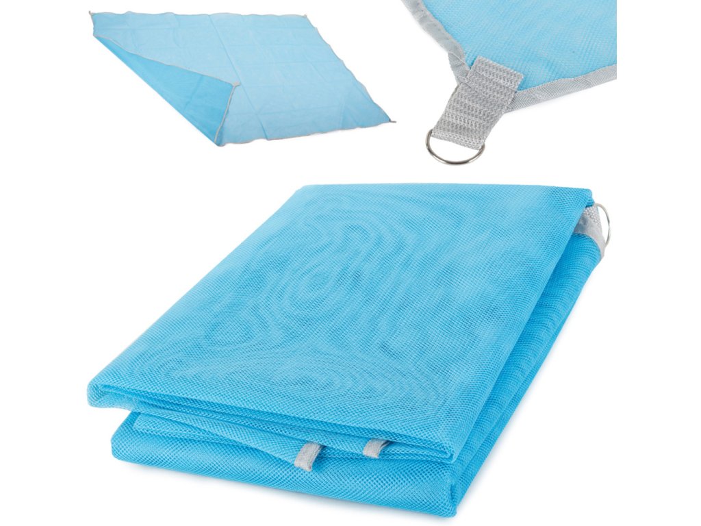Pláž si iste spájate so slnkom, vodou v okolí a pieskom. Ale čo keď vám práve ten piesok prekáža pri relaxácii? Drsné častice trením dráždia vašu pokožku, keď ležíte na deke? Máme pre vás riešenie. Plážová podložka bez piesku je nový inovatívny produkt, vďaka ktorému zabudnete na piesok, keď budete pohodlne ležať alebo sa opaľovať. Sieťový materiál vám umožní jedným pohybom zbaviť sa všetkých častíc piesku, ktoré vietor napchal na vašu deku. Trením ruky o podložku piesok pretečie cez malé otvory a nechá vaše relaxačné miesto bez piesku. Zabudnite na neustále otriasanie deky a nepríjemný pocit piesku treného o pokožku - piesková voľná karimatka vám pomôže s týmito problémami rýchlo vysporiadať. Vďaka veľkým rozmerom sa na podložku ľahko zmestí celá rodina a môžete si užívať krásne letné dni. Okrem pláže sa táto deka skvele hodí aj ako miesto na odpočinok v parku alebo na záhrade - kdekoľvek budete mať chuť. Napriek svojej veľkosti sa zložená karimatka veľmi málo miesta. Vlezie sa do každej plážovej tašky, dokonca aj naplnenej opaľovacím krémom alebo občerstvením. V rohoch výrobku sú kovové krúžky, ktorými pri zasunutí kolíka do piesku bude deka chránená pred zmotaním a zdvihnutím pri nárazoch vetra. Bude to perfektné riešenie, najmä pri mori, kde môže byť veterné počasie.