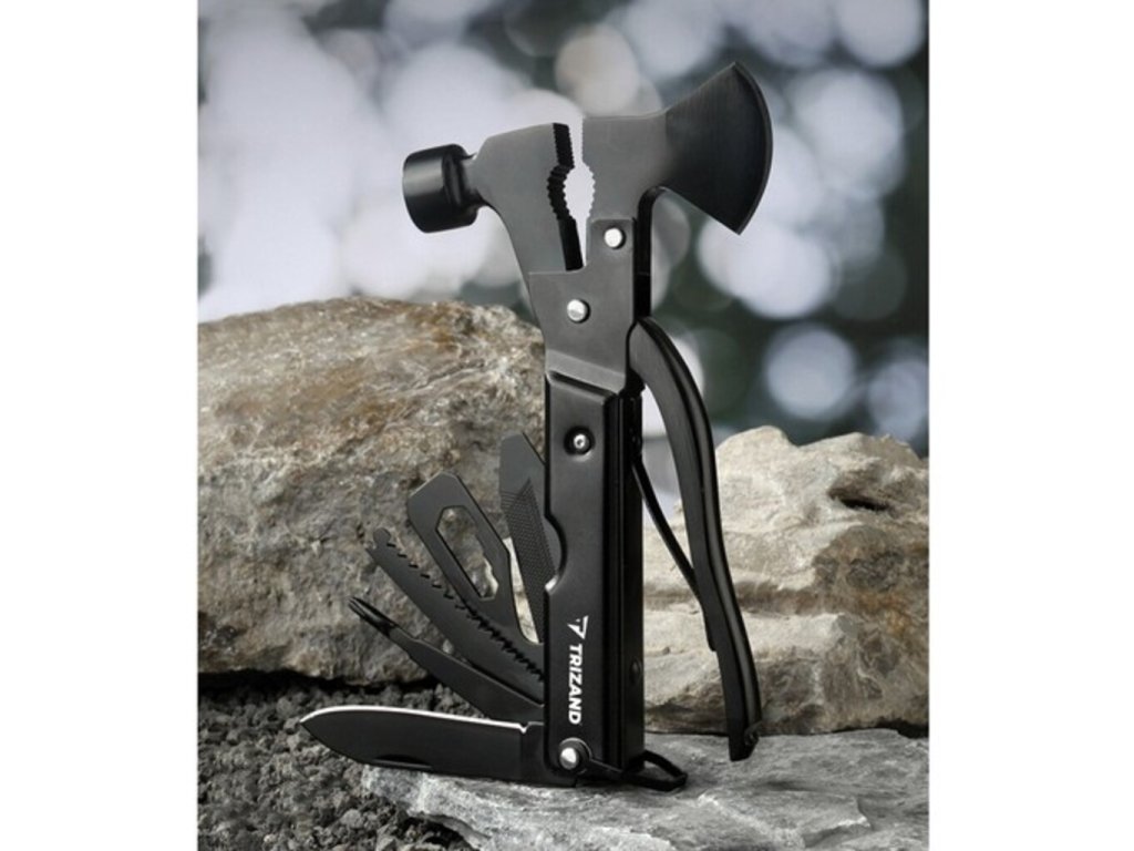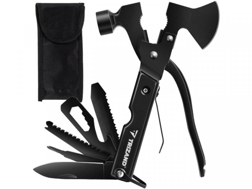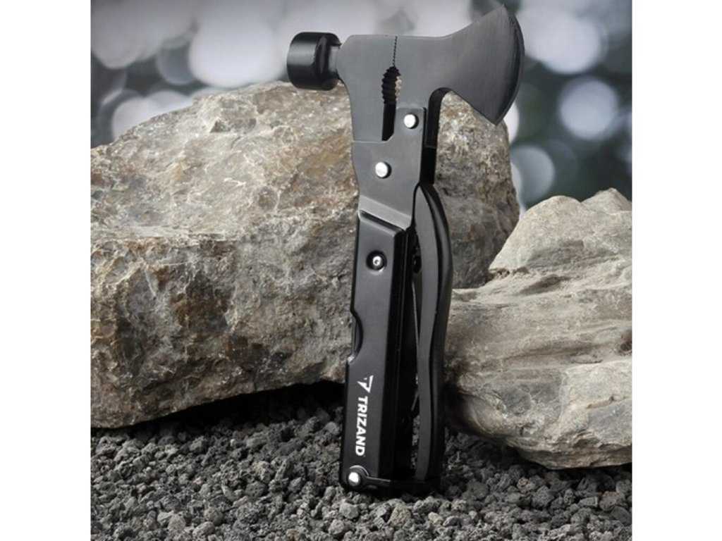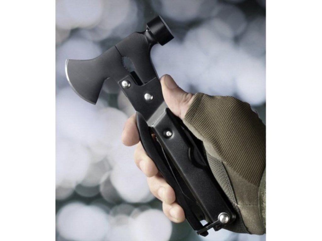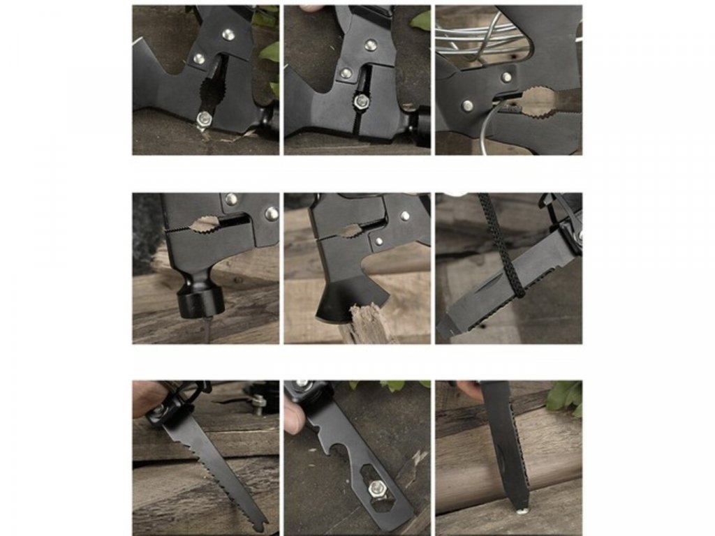 Tento produkt má až 17 vstavaných rôznych nástrojov, ktoré vám pomôžu pri prežití, rybárčení, turistike, kempovaní, prácii, alebo jednoducho pri práci na záhrade. Vielfunkčný nástroj obsahuje: sekery, zamykateľné kliešte, pilník, škrabku na ryby, štrbinový skrutkovač, inbusový kľúč, harpúnu, otvárač na fľaše, pílu na drevo, krížový skrutkovač, vreckový nôž, kladivo, nôž na drôt, kliešte, kliešte, nárazník a zámok. Nástroj je chránený uzamykateľnou rukoväťou a navyše má silikónovú ochranu sekyry. Vreckový nôž je dodávaný s pevným púzdrom uzatvárateľným suchým zipsom. Kryt má špeciálny háčik, ktorý vám umožní púzdro pripojiť na opasok nohavíc alebo batohu. Vreckový nôž má iba 17,5 cm a váži 376 g a dodáva sa s 17 nástrojmi. Okrem toho si ho môžete pripnúť na opasok. Už nikdy nepotrebujete preťažený batoh v divokej prírode. Odteraz máte viac miesta a nástroj, ktorý je vždy po ruke.