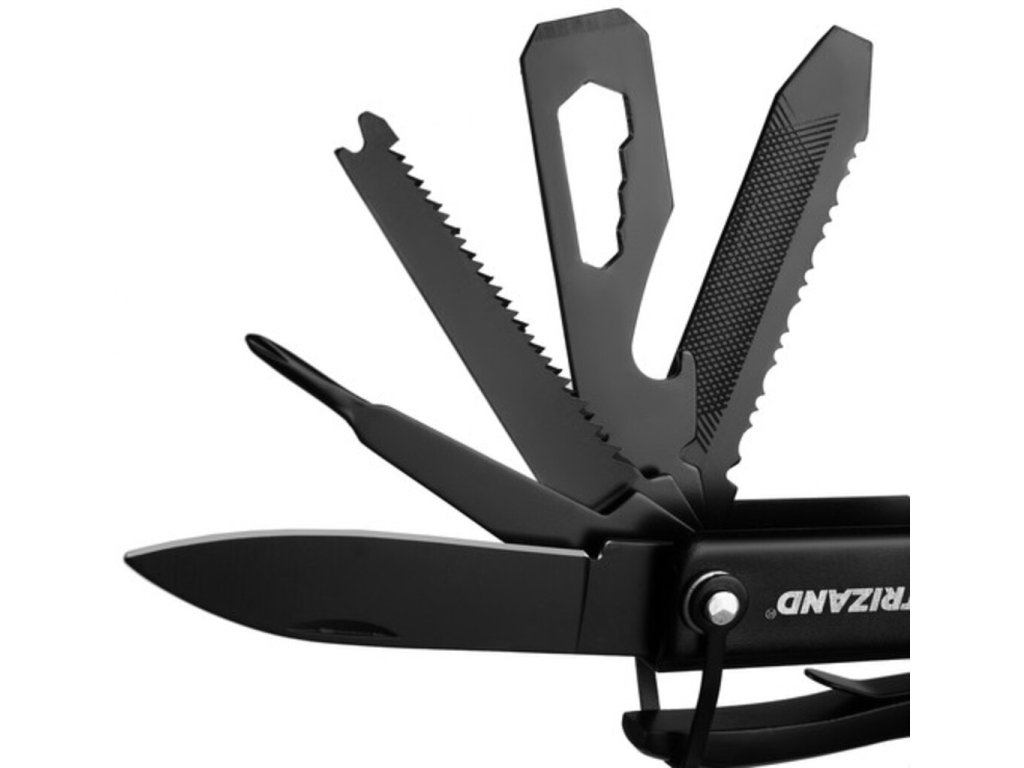 - Obsahuje: sekeru, zamykateľné kliešte, pilník, škrabku na ryby, štrbinový skrutkovač, inbusový kľúč, harpúnu, otvárač na fľaše, pílu na drevo, krížový skrutkovač, vreckový nôž, kladivo, nôž na drôt, kliešte, kliešte, nárazník a zámok.