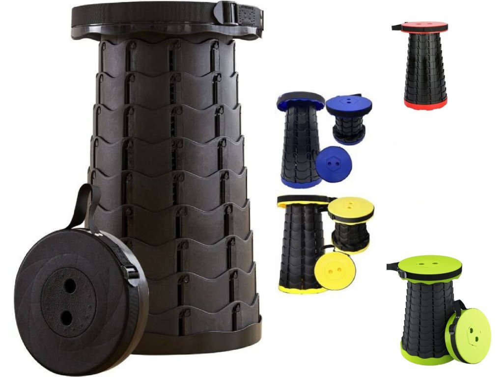 Táto teleskopická stolička je ľahká, malá a je možné ju pohodlne umiestniť do batožiny alebo do úschovne. Nastaviteľný popruh umožňuje túto stoličku ľahko nosiť v ruke alebo zavesiť na rameno. Ideálna prenosná výbava pre každého turistu, rybára a milovníka kempovania. Skladacia teleskopická stolička je nastaviteľná a je možné ju nastaviť na požadovanú výšku v rozmedzí 6 cm až 45 cm. Spĺňa požiadavky väčšiny dospelých a detí. Vyrobená z vysoko pevného odolného ekologického materiálu, valcovitá štruktúra, tesné spojovacie spony a protišmyková základňa zaisťujú, že táto skladacia stolička poskytne stabilitu pre bezpečné a pohodlné sedenie. Jedinečný uzamykací systém spony umožňuje, aby sa skladacia stolička ľahko otvárala a zatvárala počas niekoľkých sekúnd a po otvorení pevne zapadla na miesto. Rýchlo a jednoducho to zvládne aj dieťa. Keď je táto skladacia stolička zatvorená, vstupujú do hry západkové spoje navrhnuté na uzáveroch, aby sa zabránilo samovoľnému otvoreniu stoličky. Vďaka tomu je pohodlnejšia a ľahšia na prenášanie pri outdoorových aktivitách. Teleskopická stolička je ideálna pre vnútorné aj vonkajšie použitie, ako je obývacia izba, spálňa, kúpeľňa, kuchyňa, kancelária; a outdoorové aktivity ako kempovanie, rybolov, lov, turistika, grilovanie, piknik, státie v rade, záhradníčenie atď.