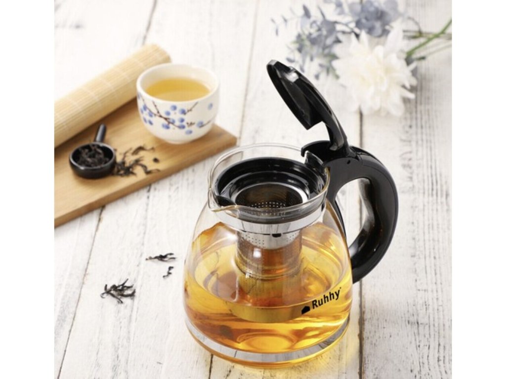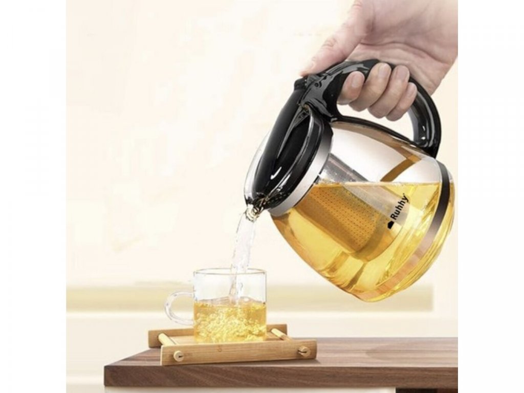 Konvica na čaj so sitkom 2 l je praktickým vychytávkou pre každého, kto ocení domáce varenie dobrého aromatického čaju. Navyše má kanvica dvojité dno, ktoré dlhšie udržiava teplotu! Skvele sa hodí aj do studených nápojov v lete. Kapacita kanvice je až 2 litre. V nádobe tejto kapacity ľahko pripravíte dostatok čaju pre celú rodinu alebo hostí. Varením čaju v hrnci RUHHY si môžete byť istí najvyššou kvalitou chuti a vône podávaného nálevu. Vnútri je oceľový nálev s jemnými očkami, ktorý bráni bylinkám dostať sa do nálevu . Nasypte čaj alebo bylinky do oceľového sitka a vychutnajte si čistý a priehľadný horúci nápoj. Vďaka neohrievajúcemu madlu môžete kanvicu bezpečne prenášať bez obáv, že si popálite ruky. Navyše sa viečko tiež neohrieva! kanvica vyrobená zo skla neabsorbuje farbivá ani vône. Navyše je odolná voči vysokým teplotám a poškodeniu spôsobenému každodenným používaním. Kanvica RUHHY zabezpečí, že vám bude slúžiť po mnoho rokov.