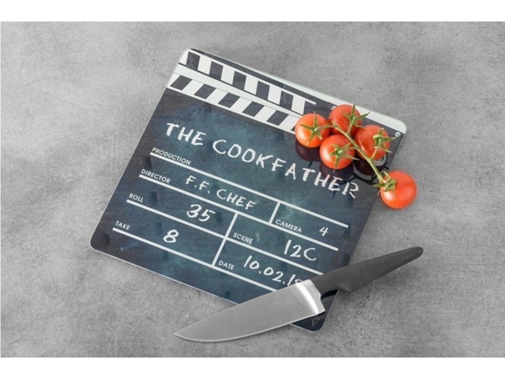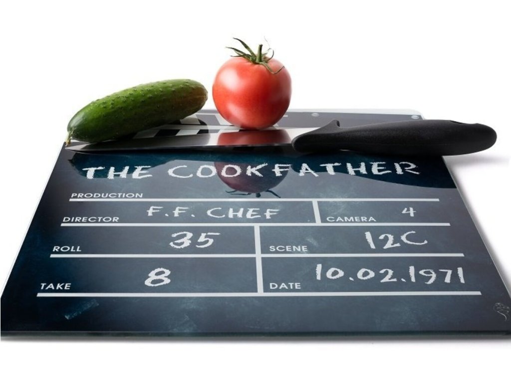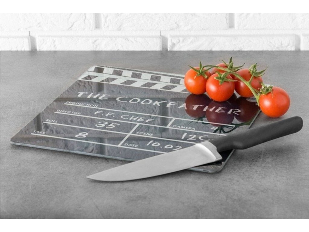 Máte v rodine milovníka dobrého filmu a chutného jedla? V tom prípade máme pre vás tip na skvelý tematický darček. Kuchynská doska na krájanie v dizajne filmovej klapky poteší nielen kuchárov. Každý milovník dobrého filmu, ktorý z času na čas trávi nejaký ten čas v kuchyni, si z nej urobí príjemný doplnok. Sklenená doska je veľmi praktická. Nezadržiava v sebe nečistoty, jednoducho sa umýva a v čase, keď ju práve nepoužívate, poslúži ako štýlový doplnok každej modernej kuchyne. Svojim dizajnom zaručene zaujme členov vašej rodiny i návštevy. Pre milovníkov filmu, ktorí sa s varením príliš nekamarátia, môže byť zas skvelou motiváciou pre pobyt v kuchyni. Túto praktickú dosku na krájanie v dizajne filmovej klapky si zaručene zamilujete.