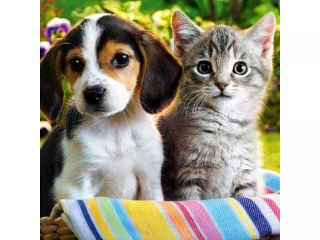 Diamantové maľovanie - Mačka a Pes