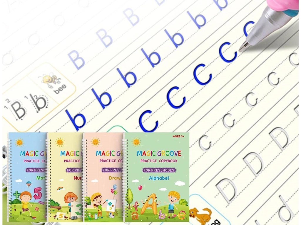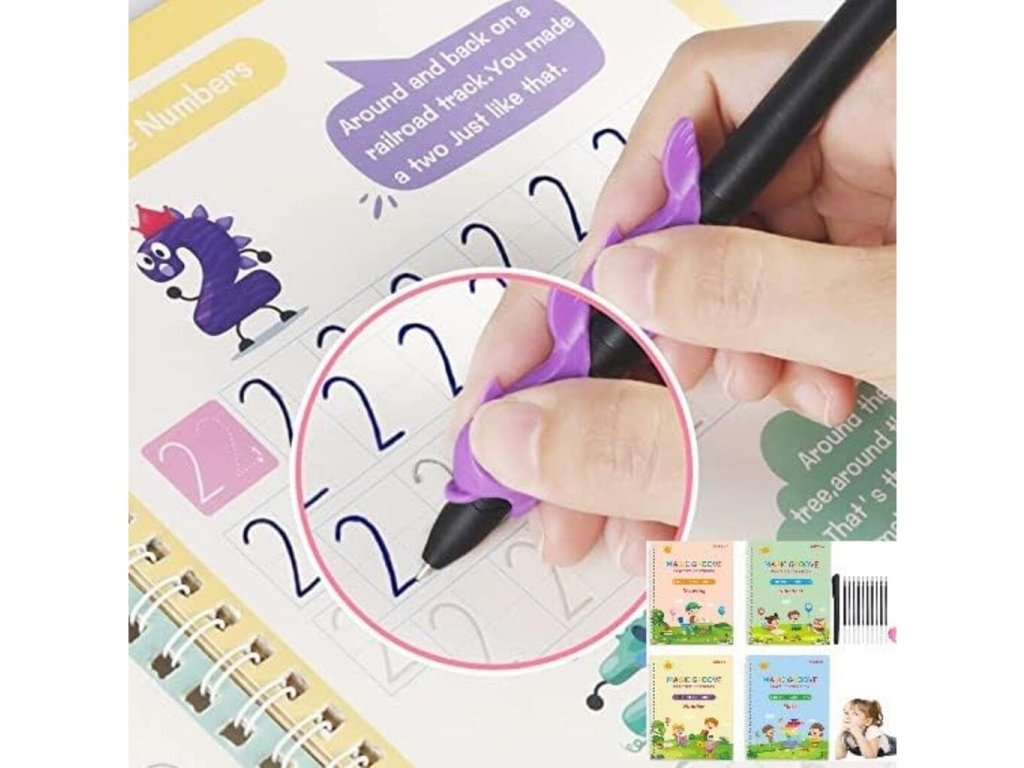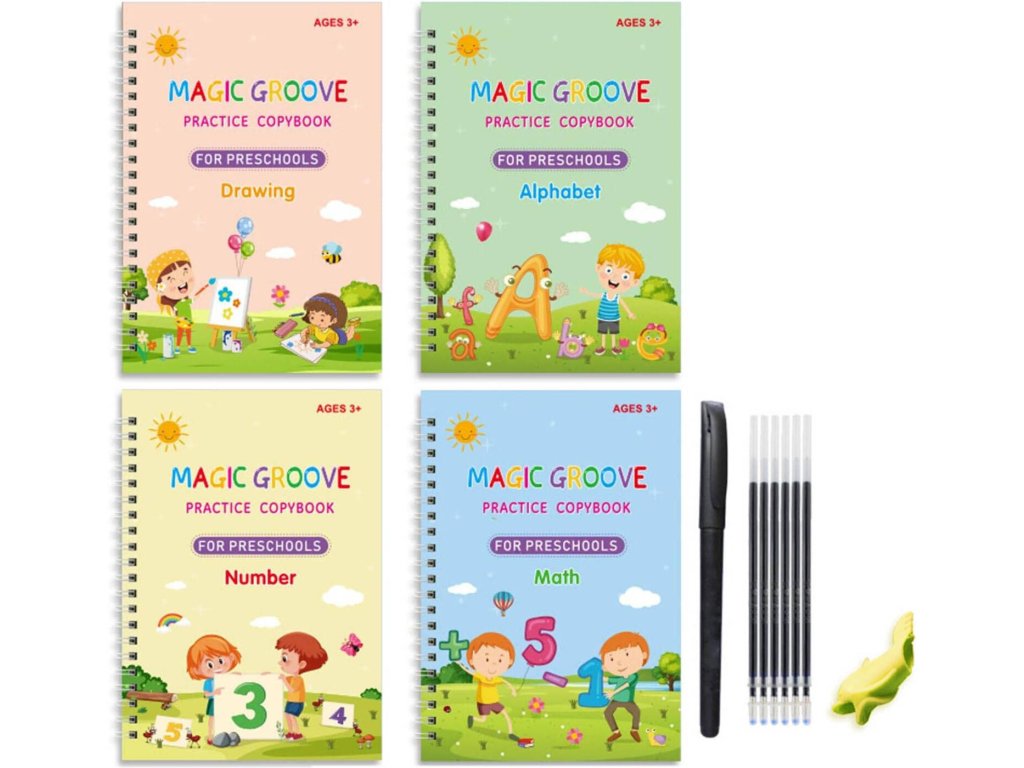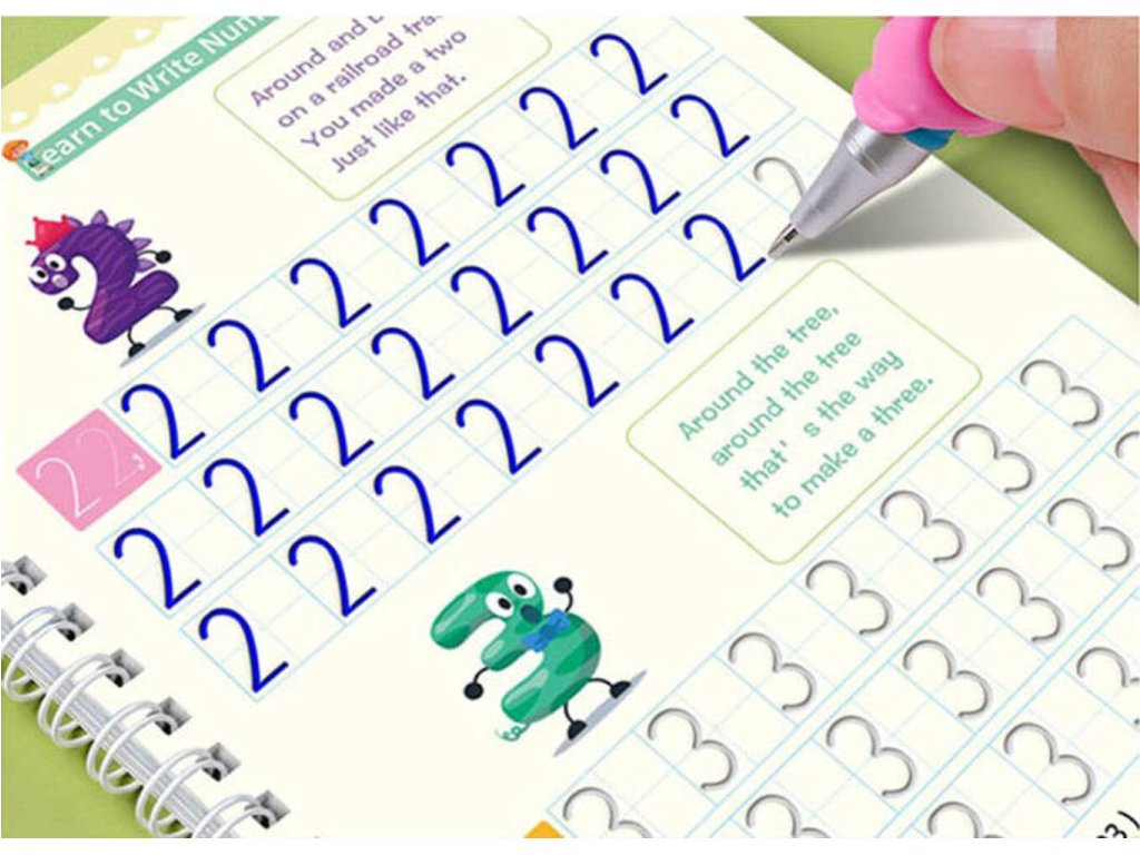 Pracovné zošity na učenie písania a kreslenia - Magic draw sú v angličtine, takže sa budú učiť aj anglicky nenásilnou formou. Tlačivo a papier sú vyrobené z jedinečného materiálu, takže atrament automaticky vybledne do 30 minút po zapísaní a učebnica kúziel pre deti je možné používať opakovane a ako novú. Vzrušujúce aktivity v zošitoch môžu vašim deťom priniesť veľa vzdelávacej zábavy. Každá stránka písaníc pre predškolské deti obsahuje atraktívne, efektívne a praktické cvičenia, aby deti získali cenné zručnosti koordinácie ruka-oko a ručné písanie. Knižky majú trojrozmerný dizajn šablóny, ktorý je pre deti vhodný na zvládnutie písania. Dieťa bude používať pero na sledovanie ciest a kreslenie rôznych tvarov. Silikónová pomôcka pre písanie má deťom uľahčiť zvládnutie správneho spôsobu držania pera. Perfektná veľkosť našej knihy je špeciálne navrhnutá pre deti. Papier je silný, nie je ľahké ho roztrhnúť. Držiak pera je vyrobený zo silikónu, ktorý je 100% bezpečný pre deti. Veľkosť našej magickej opakovane použiteľnej sady kaligrafických písaníc je pohodlná! Naša sada magických trasovacích zošitov je vhodná pre všetky druhy sviatočných darčekov a cestovania. Táto kúzelná sada písaníc pomôže vašim deťom pripraviť sa do školy. So 4 písanicami a dvoma miznúcimi atramentovými perami môžu túto písaciu sadu používať dve deti naraz! Sada kúzelných znovu použiteľných kaligrafických písaníc je perfektným darčekom pre vaše deti vo veku 3-8 rokov.