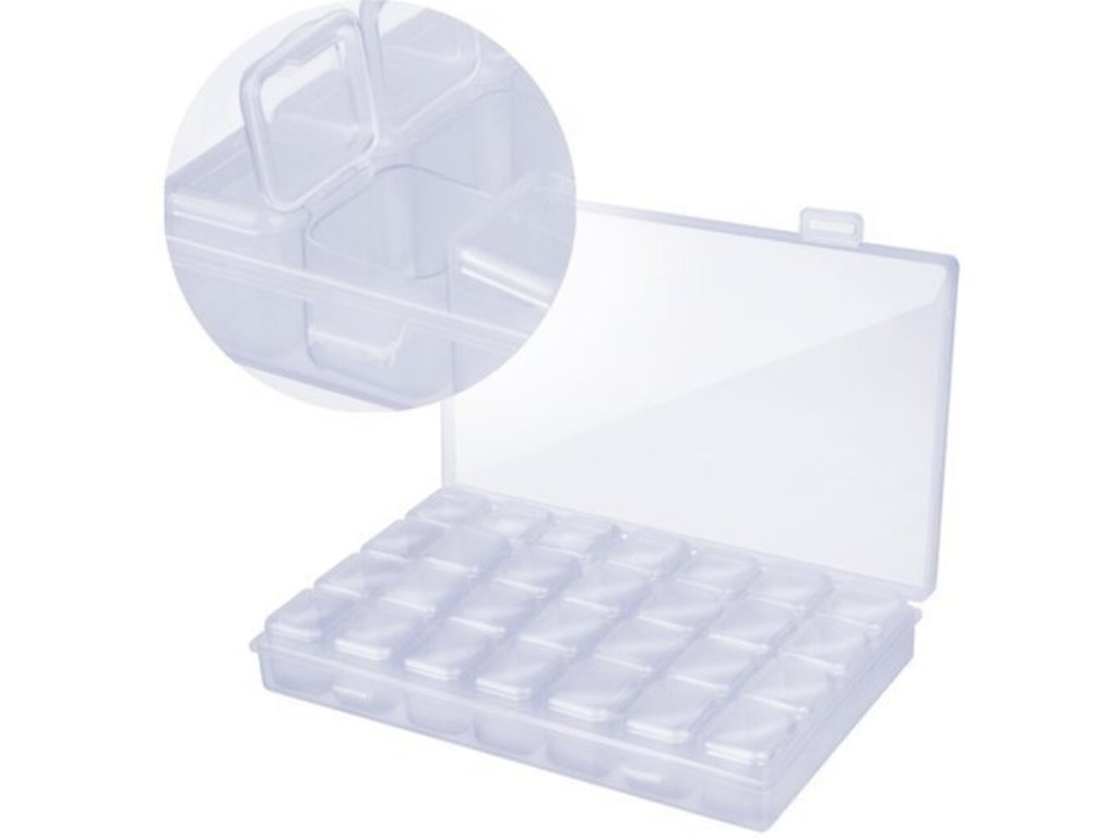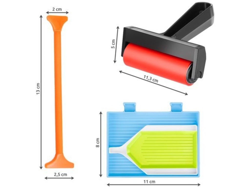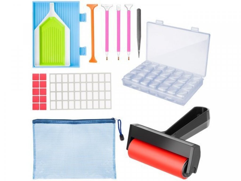 Doplnky pre diamantové maľovanie sú skvelou zábavou pre celú rodinu a priateľov a zároveň skvelým spôsobom trávenia voľného času, vďaka nim si každý oddýchne a zabudne na každodenné problémy. Diamantová sada je mimoriadne praktický doplnok, ktorý obsahuje mnoho položiek, vrátane valečku na lisovanie diamantov, ktorý ich dokonale lisuje, zároveň pomáha ich prilepiť a vyrovnávať ich pokrytú plochu. Súprava obsahuje ajsáčok na náradie, organizér na diamanty a samolepky na ich označenie na organizéri, čo vám pomôže udržiavať poriadok a starostlivo oddeliť jednotlivé prvky sady. Súprava na maľovanie diamantov obsahuje mnoho položiek, ktoré urobia vkladanie diamantových obrázkov oveľa pohodlnejším a praktickejším. Súčasťou súpravy sú aj doplnky ako 4 "perá", organizér na diamanty, lisovací valeček, pinzeta, lepidlo, taštička na náradie, 3 kyvetky a samolepky na označenie diamantov na organizéri.