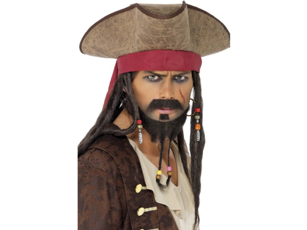 Staňte sa kráľom pirátov s týmto jedinečným klobúkom Jacka Sparrowa! Tento trojcípy klobúk v hnedej farbe s červenou šatkou a dlhými rasta vlasmi v tmavohnedej farbe vás premení na neodolateľnú pirátsku postavu. Veľkosť je univerzálna a vhodná pre dospelých. S týmto klobúkom budete hviezdou každého karnevalu, Halloweenu alebo tematickej párty. Buďte originálni a vystúpte z davu s touto štýlovou a zároveň výraznou pokrývkou hlavy! Nakúpte si ho ešte dnes a buďte pripravení na dobrodružstvá plné zábavy a vzrušenia!