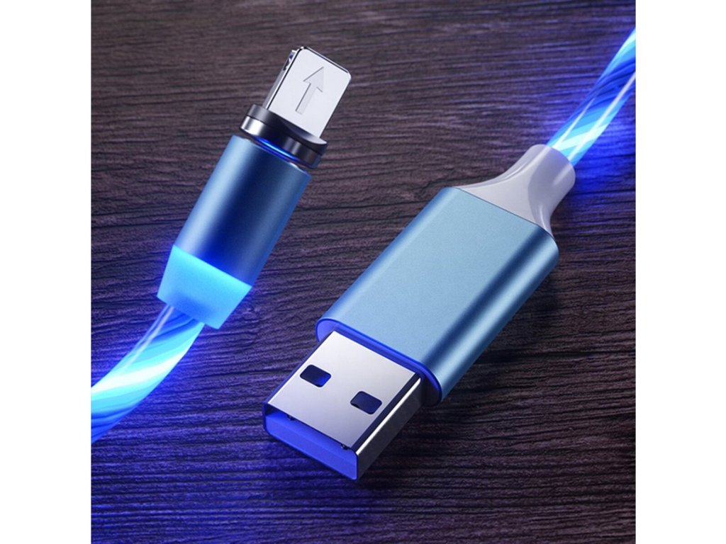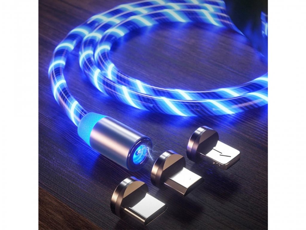 Univerzálny kábel má tri konce, takže môžete nabíjať akékoľvek zariadenie so vstupom: MICRO USB, TYP C, FLASH Tento kábel je odolný voči prachu a nečistotám, čím chráni port telefónu pred poškodením. Okrem toho má podsvietenie LED. Magnetický kábel 3 v 1 s opletením je dokonalým riešením na nabíjanie telefónu a iných elektronických zariadení. Kábel je vybavený opletom osvetleným modrým svetlom LED.
