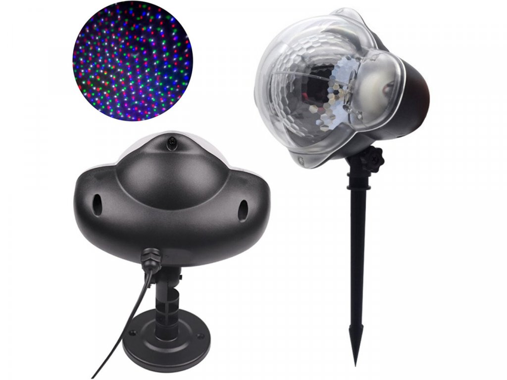 Praktický reflektor premieta na fasádu budovy tisíce zelených alebo zeleno-červených svetiel. Skoncujte s časovo náročným zdobením vášho domova tisíckami tradičných a energeticky náročných žiaroviek. Teraz dosiahnete efekt v priebehu niekoľkých minút, čím ušetríte čas, prácu a veľa peňazí na účte za elektrinu.