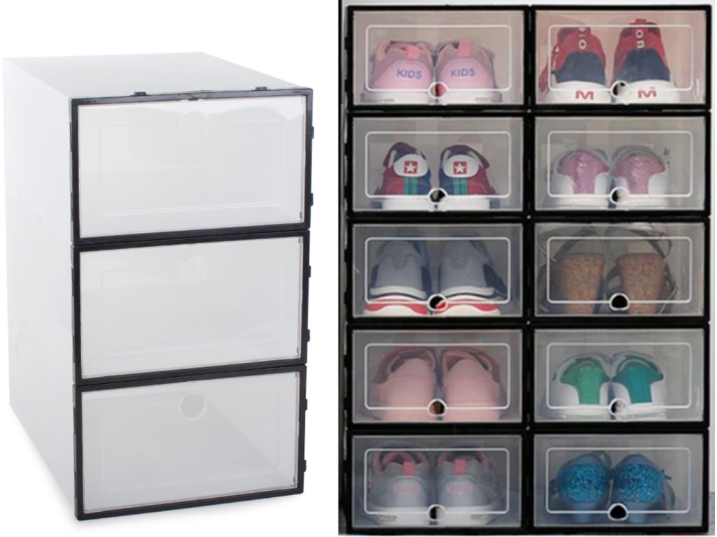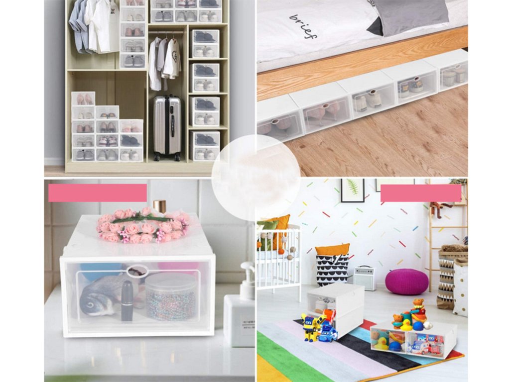 Využite náš praktický organizér na topánky na efektívne využitie priestoru vo vašej skrini alebo šatníku a udržiavajte všetko upratané a čisté. Modulárny dizajn vám umožní spojiť krabice do ľubovoľného tvaru, ktorý bude zodpovedať potrebám vašej miestnosti. Tieto krabice sú ideálne na dlhodobé skladovanie vďaka vetracím otvorom, ktoré zabezpečujú cirkuláciu vzduchu. Organizéry je možné umiestniť kamkoľvek a sú skvelým riešením na uloženie hračiek, drobností, čiapok, šatiek, kozmetiky a ďalších vecí. Vďaka priehľadnému dizajnu nemusíte topánky hľadať, pretože sú viditeľné cez klopu. A keď organizér nepotrebujete, jednoducho ho zložíte do plochého stavu pre jednoduché uskladnenie. S týmto organizérom budete mať všetko na svojom mieste a ľahko dostupné.