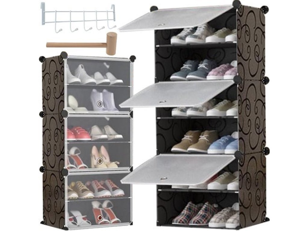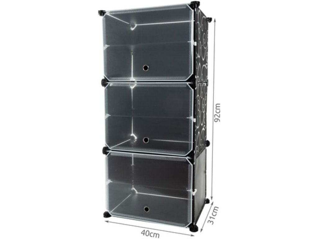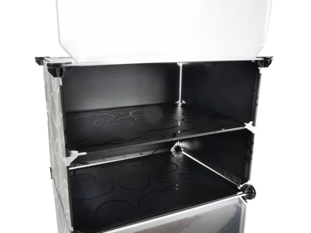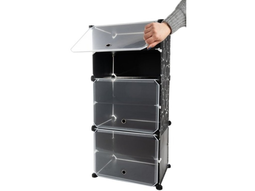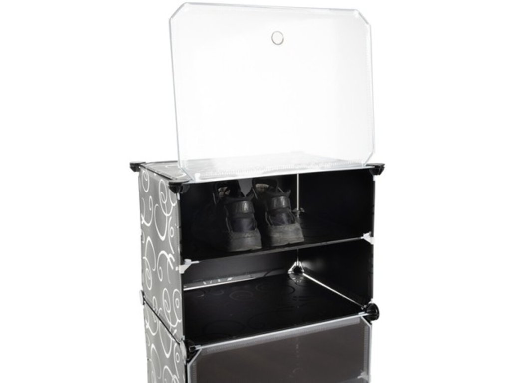 Modulárna polica na topánky umožňuje udržiavať poriadok v topánkach členov domácnosti a zároveň k nim poskytuje voľný prístup a jej používanie vám umožní ušetriť veľa miesta v miestnosti. Sdobre sa čistí a je veľmi funkčný. Súprava obsahuje kladivo, ktoré veľmi uľahčuje montáž. Polica na topánky je modulárna. Môžete ju predložiť podľa svojej individuálnej koncepcie. Vďaka modulárnej konštrukcii police na topánky je možné navzájom kombinovať niekoľko zostáv a získať tak kompletný kus nábytku, ktorý bude vyhovovať potrebám rodiny z hľadiska priestoru. Modulárny regál má otváracie dvierka, takže topánky nestojí "vonku" a nie sú vystavené napr. prachu. Dvierka sú priehľadné, takže vidíte obsah políc a ľahko nájdete pár, ktorý vás zaujíma.