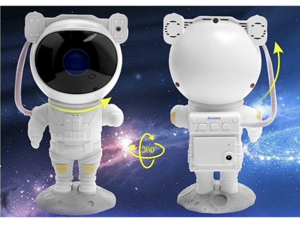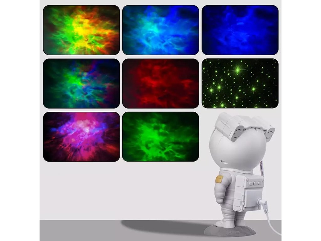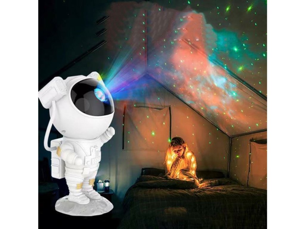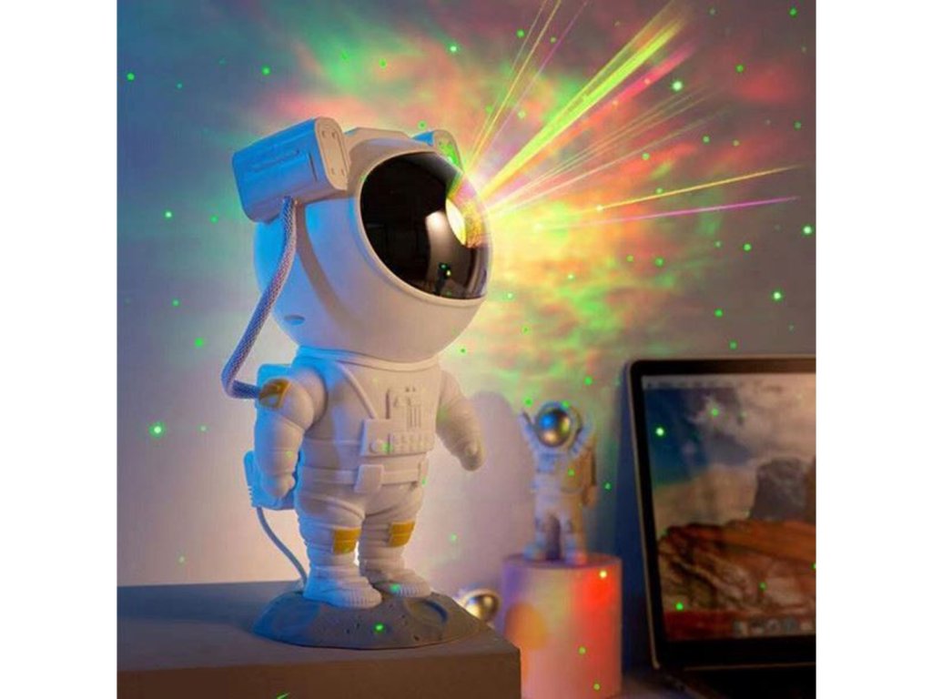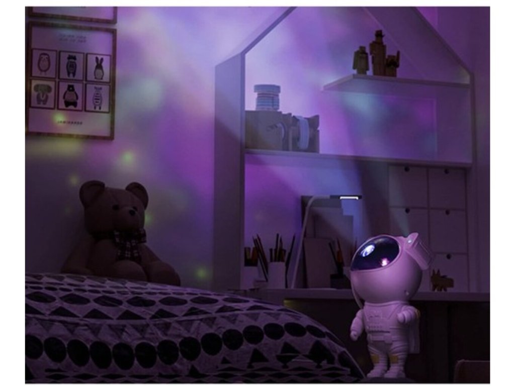 Projektor v tvare milého kozmonauta je ideálnou voľbou pre tých, ktorí chcú pridať do svojho interiéru čaro a vtipný prvok. Kozmonautova helma je magneticky pripevnená k telu, čo umožňuje plynule nastaviť uhol hviezd a hmloviny. Kozmonaut je umiestnený na mesačnom stojane, ktorý možno ľubovoľne nastaviť, a pohyblivé prvky z figúrky robia z projektora skvelú hračku aj dekoráciu. Sada je vybavená diaľkovým ovládaním pre pohodlné ovládanie zariadenia. Projektor kozmonauta je multifunkčný – funguje ako lampa aj projektor a poskytuje relaxačnú atmosféru s realistickou hviezdnou oblohou. Navyše s možnosťou premietať hviezdy a galaxie až v 8 režimoch a s otočnou hlavou umožňujúcou projekciu v širokej rovine je tento LED projektor v tvare kozmonauta perfektným darčekom pre deti aj dospelých.