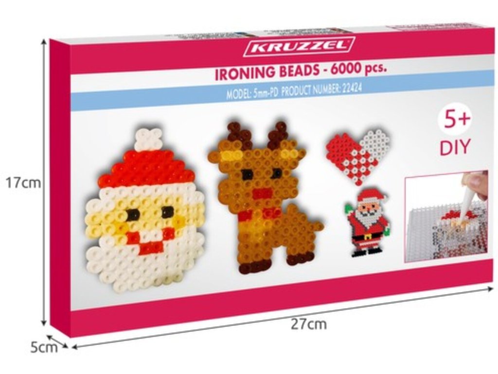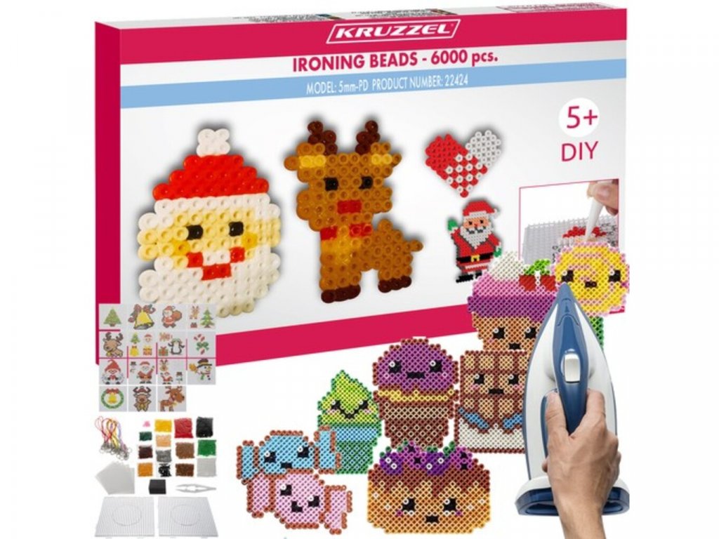 Sada obsahuje 13 rôznych farieb korálok. Jedno balenie obsahuje 6000 kusov, čo umožňuje vytvárať veľa rôznych figúr . Vianočné formy s rôznymi hotovými podložkami rozvíjajú v dieťati chuť na aranžovanie a hranie, umožňujú vytváranie rozprávkovo farebných obrázkov rôznych tvarov , možností je veľa - dieťa si môže vytvoriť rôzne postavičky, zvieratká atď. Vytvorením niekoľkých vrstiev šablóny môžeme vytvoriť 3D postavy! Sada korálok umožňuje zaujímavý a radostný spôsob trávenia času, ale tiež ovplyvňuje intelektuálny rozvoj dieťaťa a zvyšuje jeho motoriku. Rozvíjajú predstavivosť a stimulujú kreativitu , rovnako ako učia tímovú spoluprácu a zlepšujú sociálne a integračné zručnosti . Sada je ideálna na hranie samostatne alebo s dospelými alebo inými deťmi v väčšej skupine. Je tiež užitočné pri učení farieb a počítania. Hra s korálkami má pozitívny vplyv na rozvoj dieťaťa, formuje jeho výtvarné schopnosti spolu s rozvojom fantázie, cvičí koncentráciu. Rozvíja predstavivosť a podnecuje kreativitu, rovnako ako učí tímovú spoluprácu a zlepšuje sociálne a integračné zručnosti.