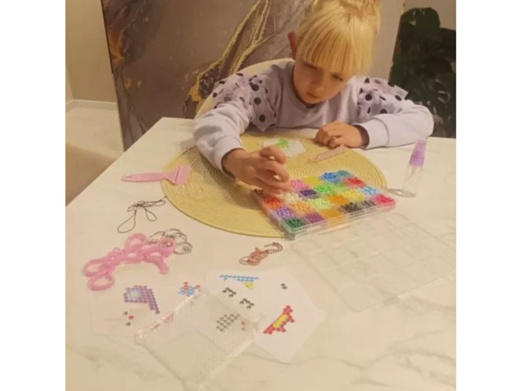 Táto jedinečná sada určite zaujme každú dievčinu, ktorá má rada korálky. Sada obsahuje 24 rôznych farieb korálok: hnedá, 3 odtiene žltej, 2 odtiene ružovej, 3 odtiene modrej, 3 odtiene fialovej, 4 odtiene oranžovej, 4 odtiene zelenej, červená, čierna, šedá, biela. Jedno balenie obsahuje až 28,00 ks korálok, čo vám umožní vytvárať čokoľvek, o čom vaše dieťa sní . Krabica obsahuje kompletnú sadu pre skvelú zábavu. 2 štvorcové a hexagonálne formy a 16 rôznych hotových vzorov vzbudia u vašich detí túžbu po aranžovaní a hraní si s korálkami. Vytvorí farebné obrázky a možností je veľa. Môžete tvoriť podľa šablóny alebo použiť vlastnú fantáziu. Vytvorením niekoľkých vrstiev šablóny môžeme vytvoriť 3D postavy. Kreatívna sada obsahuje ďalšie príslušenstvo, ako sú karabíny, kružby a konektory. Pre deti bude úžasná zábava tvoriť prívesky na kľúče alebo telefónne čaro. Pre chlapcov aj dievčatá. Ako vytvoriť figúrku? Je to veľmi jednoduché! Po zaranžovaní príslušného vzoru ho jednoducho postriekajte vodou a počkajte, kým zaschne. Hra s korálkami má pozitívny vplyv na rozvoj dieťaťa, formuje jeho výtvarné schopnosti spolu s rozvojom fantázie, cvičí koncentráciu. Okrem toho stimuluje kreativitu, učí tímovú spoluprácu a zlepšuje sociálne a integračné zručnosti.