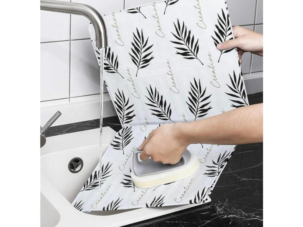 Hliníková podložka chrániaca okolie sporáka - opakovane použiteľný výrobok. Perfektná vychytávka, ktorá pomáha udržiavať poriadok okolo sporáka. Použitie hliníka zabezpečuje, že sa jedlo alebo tuk pri varení nepripáli na podložku. Podložka je tak ľahká a flexibilná, že ju možno ľahko zložiť a uložiť. Uľahčuje udržiavanie poriadku v kuchyni.