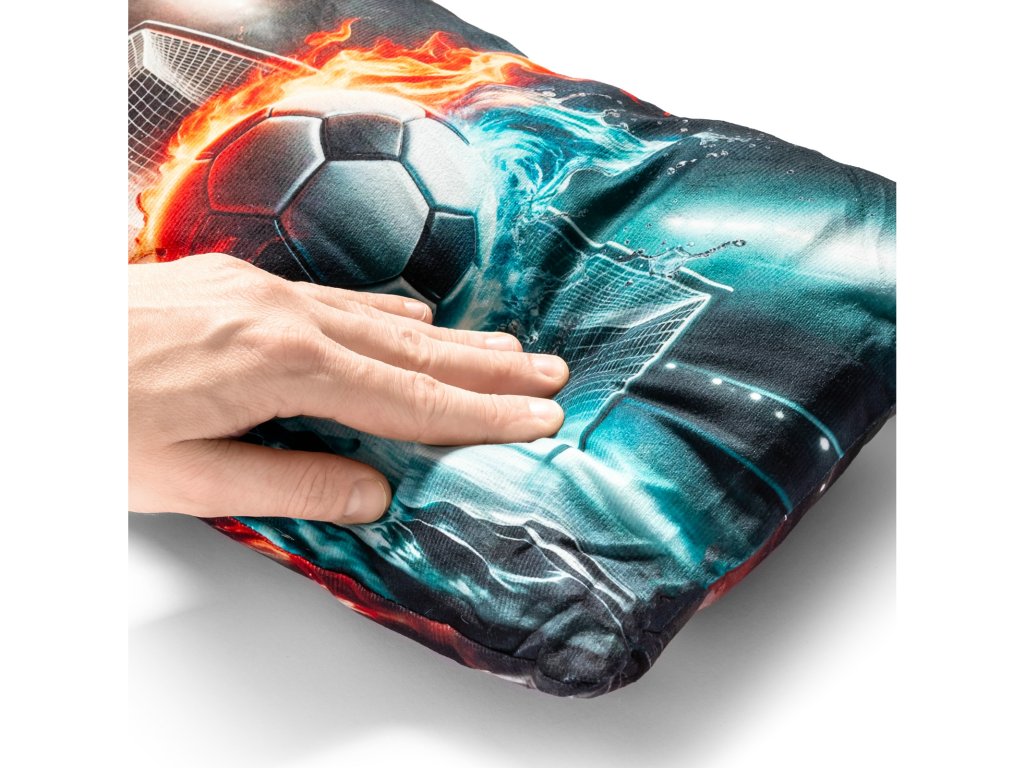- Dizajn: Dynamická potlač s motívom futbalovej lopty, ohňa a vody