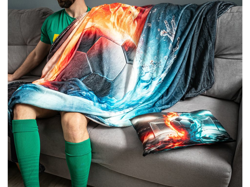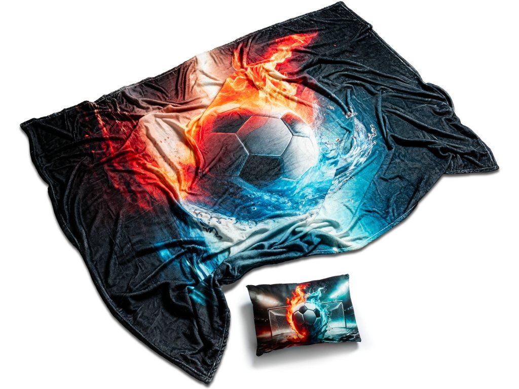 Futbalový set deka a vankúš pre futbalistov je ideálnym doplnkom pre každého vášnivého fanúšika futbalu! Tento exkluzívny set obsahuje mäkkú a pohodlnú deku s dynamickým motívom futbalovej lopty obklopenej ohňom a vodou a štýlový vankúš, ktorý prináša nielen pohodlie, ale aj zvýrazňuje vašu futbalovú vášeň. Vďaka intenzívnym farbám a energickému dizajnu vytvorí futbalový set deka a vankúš pre futbalistov jedinečnú atmosféru u vás doma alebo vo vašom fanúšikovskom kútiku. Perfektný ako darček alebo na spríjemnenie večerov pri obľúbenom zápase!