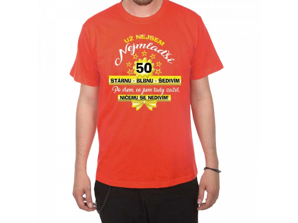 Tričko - Už nie som najmladší 50 rokov je krásny darček pre oslávenca 50 rokov. Je vyrobená zo 100 % bavlny a má okrúhly výstrih. Tričko s vtipným nápisom určite poteší každého.