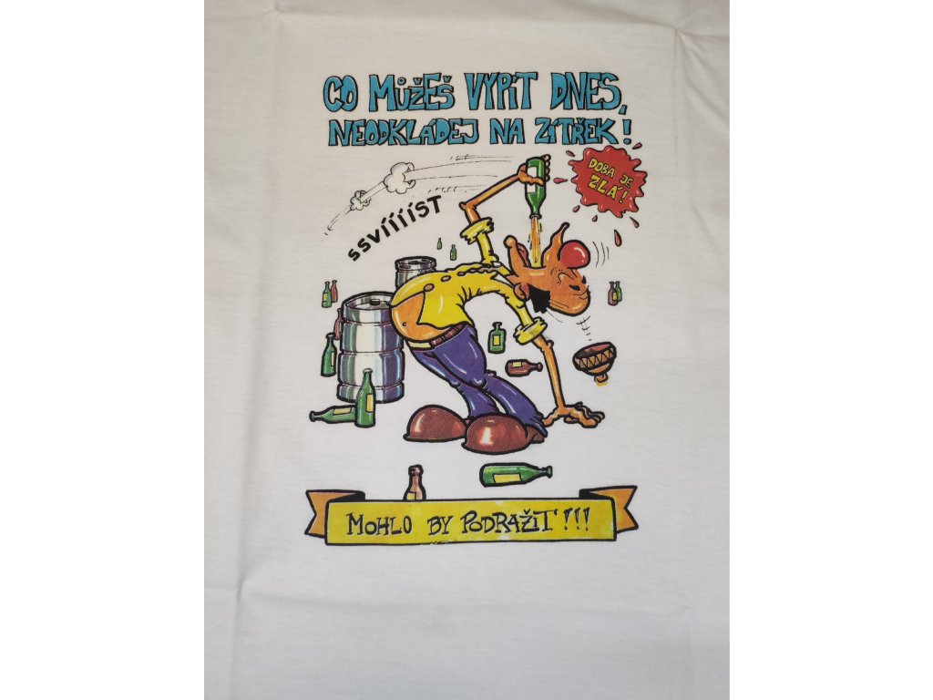 Toto tričko s vtipným obrázkom a nápisom vyčarí úsmev na tvári každému. Toto tričko je vyrobené z bavlny, má okrúhly výstrih a dvojité prešitie na výstrihu, rukávoch a spodnom okraji. Tričko - Čo si dnes vypiješ, zaručene pobaví originálnym a vtipným obrázkom, ktorý vám zaručene zdvihne náladu. Darujte toto veselé tričko priateľovi alebo bratovi a urobte mu radosť. Tričko - Čo môžeš vypiť dnes, je originálny narodeninový darček.