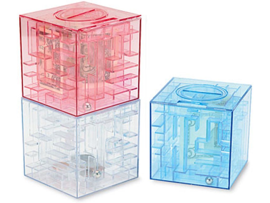 Hovorí sa, že cesta k peniazom je skutočne kľukatá. Väčšinou sa toto tvrdenie vzťahuje na peniaze, ktoré ste ešte len zarobili, ale s touto pokladničkou im môžete dať úplne nový rozmer! Táto inteligentná pokladnička vám umožní uložiť peniaze do svojich útrob a kým neprekonáte hádanku, ktorú skrýva, už sa neotvorí. Originálny darček pre deti a šetrných priateľov.