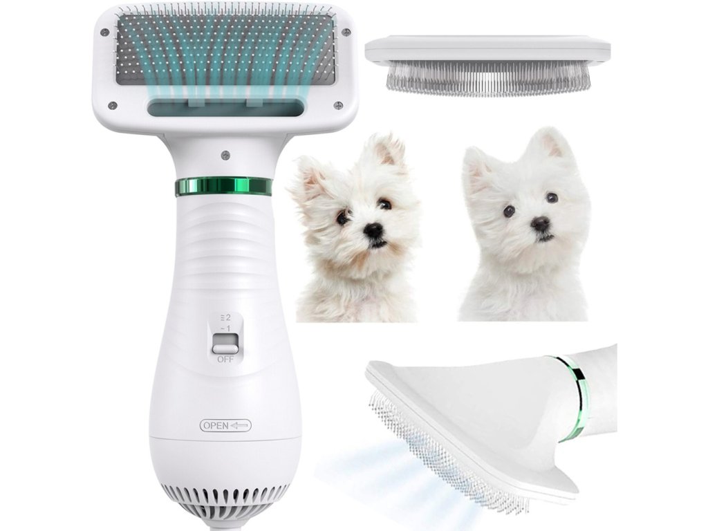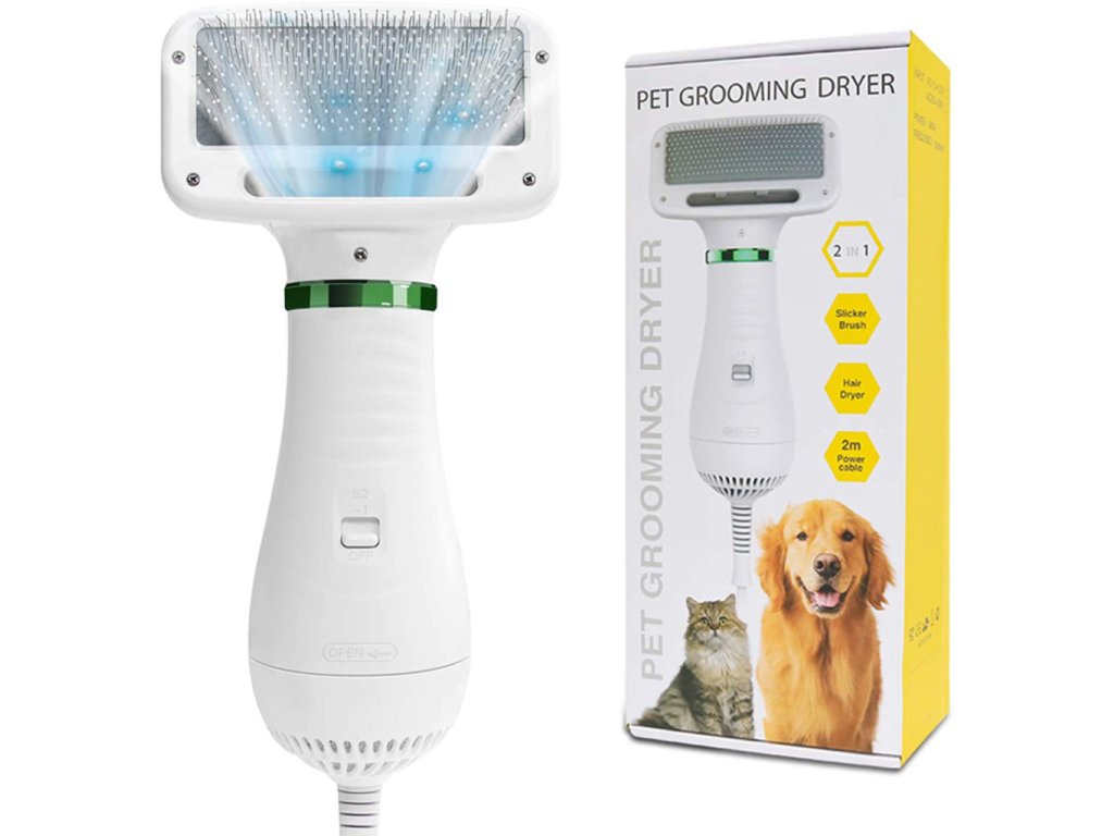 Hrebeň a fén 2v1 je ideálny, keď chcete umyť, vysušiť a vykartáčovať svojho domáceho miláčika. Užitočné aj po prechádzke počas daždivých dní. Sušička má dva režimy sušenia - nízka a vysoká teplota.