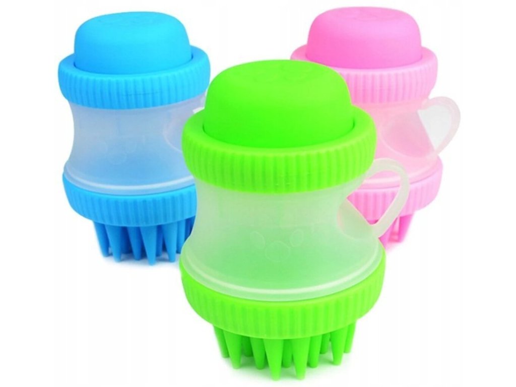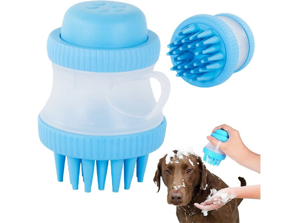 Masážna Kefa pre zvieratá, ktorá vám pomôže ľahko umyť vašich domácich miláčikov. Má silikónové kefy, ktoré nedráždia pokožku, a vďaka pumpičke umiestnenej v hornej časti zariadenia môžete dávkovať špeciálny šampón pre psov.