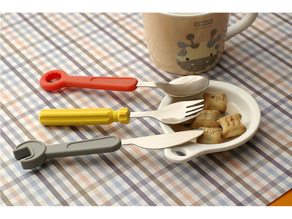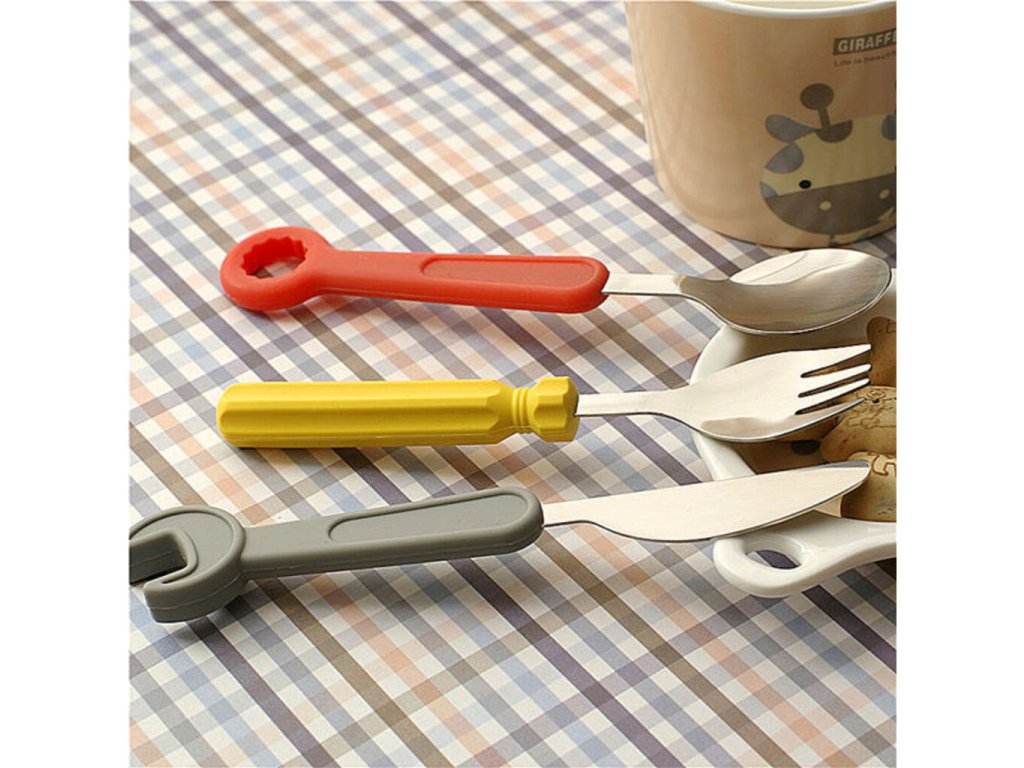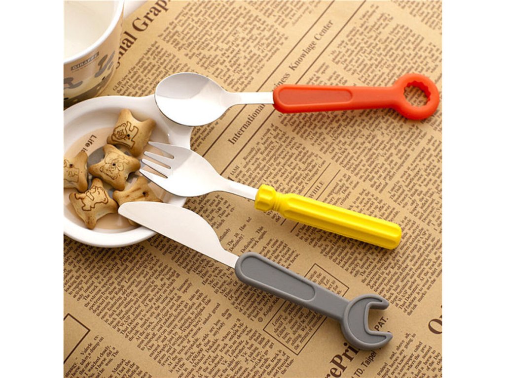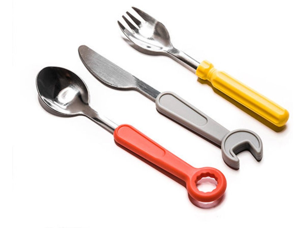 Máte doma malého opravára, ktorý sa s jedlom príliš nekamaráti? Premeňte mu posedenie pri stole na jedinečný zážitok. S touto originálnou sadou príborov v tvare kutilského náradia si zamiluje aj špenát. Sada obsahuje kompletný detský príbor s farebnými silikónovými rúčkami.Rúčky sú tvarované v dizajne náradia, ktoré váš malý kutil iste dôverne pozná. Detská sada príborov - náradie predstavuje originálny darček nielen pre chlapcov.