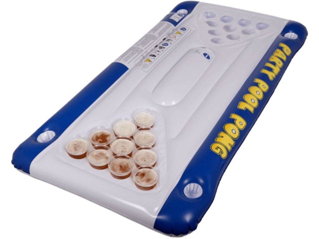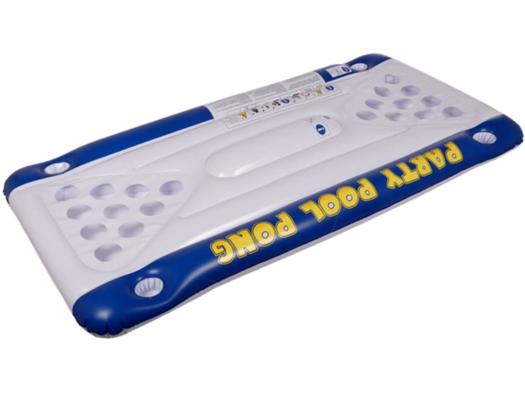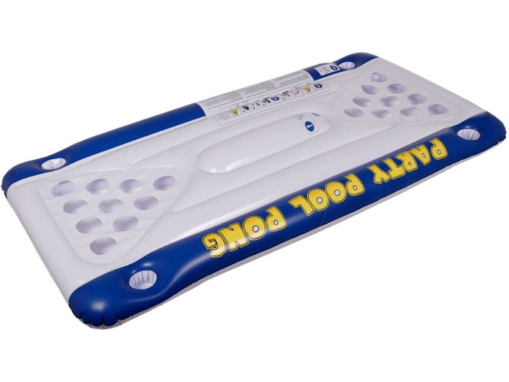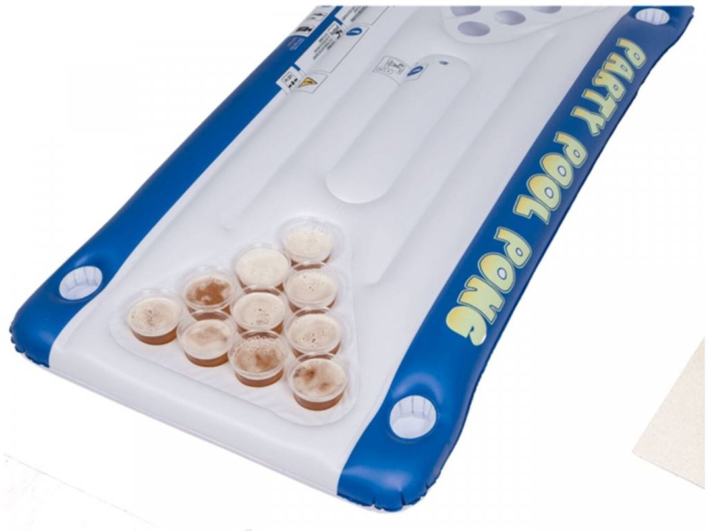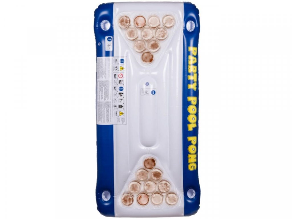 Beer pong nafukovací bazén matrac je ideálnym darčekom pre každého, kto sa rád zabáva a miluje pivo. Beer pong neboli pivní ping ponk zná většina lidí z amerických filmů. Beer pong je hra pro čtyři hráče, která je spojená s pitím piva. Je to perfektní zábava na každou letní párty. Úkolem hráčů je hodit pingpongový míček do soupeřových kelímků s pivem. Trefený kelímek musí soupeř vypít. Kelímky můžete naplnit jakýmkoliv pitím např. limonádou a může to být i zábava na dětskou párty. Beer pong je oblíbená hra na párty u bazénu. Nebylo by tedy lepší, kdyby existoval způsob, jak hrát tuto zábavnou pitnou hru ve vodě? Tento bazénový pivní pongový stůl je nafukovací ve tvaru pivního pongového stolu. Na obou koncích má držáky nápojů, takže hru mohou hrát dvě hry. Držáky na poháry mají univerzální velikost a hodí se pro většinu sklenic a pohárů na pivo.