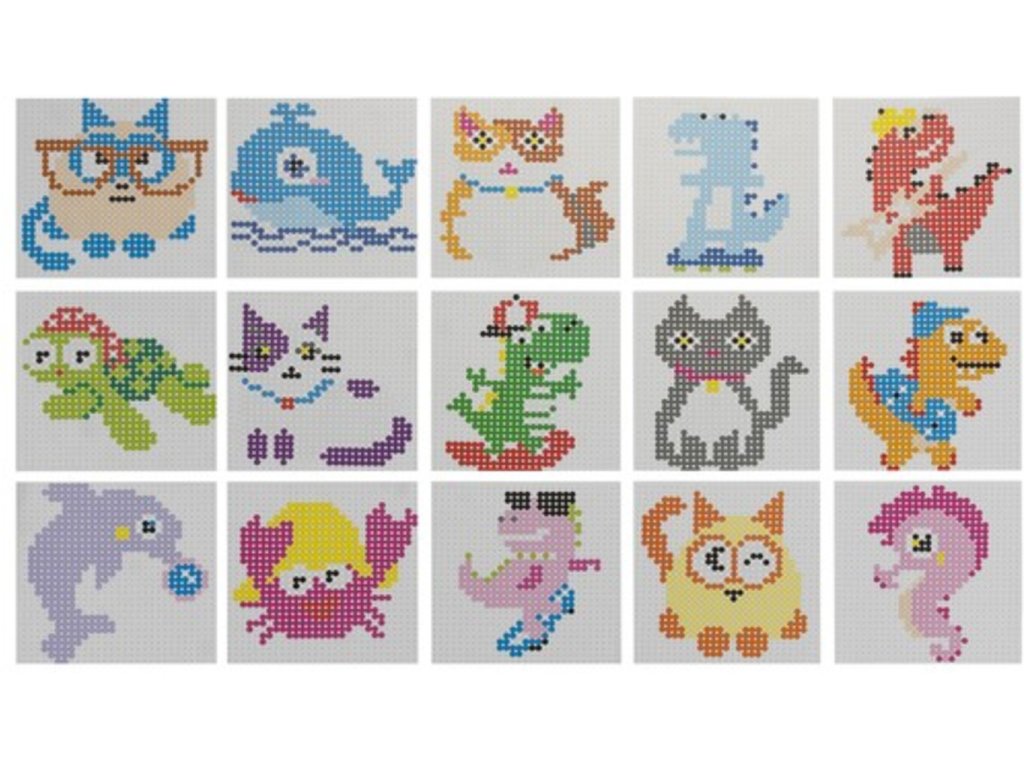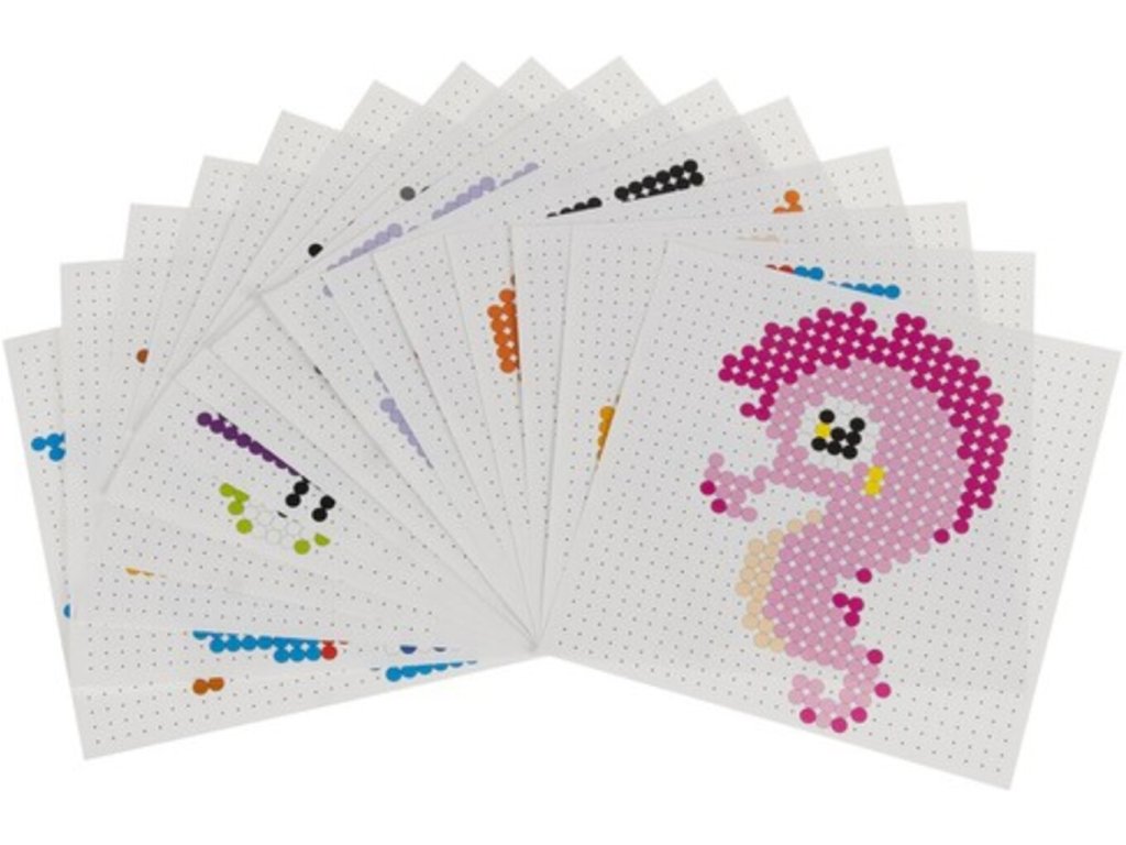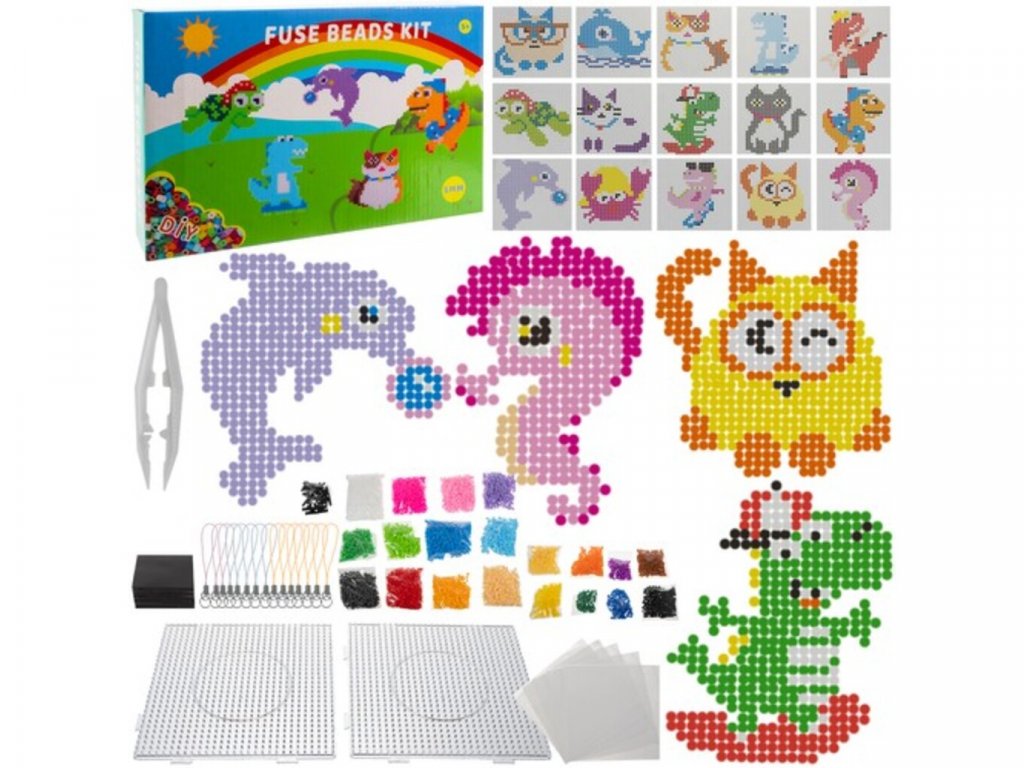 Sada obsahuje 20 rôznych farieb korálikov: biela, čierna, hnedá, 2 odtiene žltej, 2 odtiene oranžovej, béžovej, 2 odtiene ružovej, 2 odtiene fialovej, červená, šedá, 3 odtiene zelenej, 3 odtiene modrej. Jedna sada obsahuje až 6500 korálok, čo vám umožní vyrobiť mnoho figúrok. Súprava obsahuje kompletnú sadu pre skvelú zábavu. 2 štvorcové formy a 15 hotových vzorov so zvieratkami donútia dieťa ochotne aranžovať a hrať sa s korálkami. Vytvorí farebné obrázky a možností je veľa. Môžete tvoriť podľa šablóny alebo použiť vlastnú fantáziu. Vytvorením niekoľkých vrstiev šablóny môžeme vytvoriť 3D postavy.