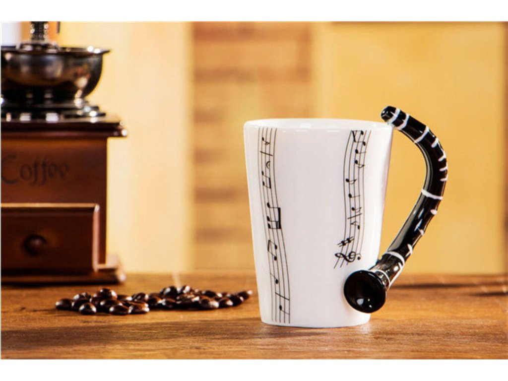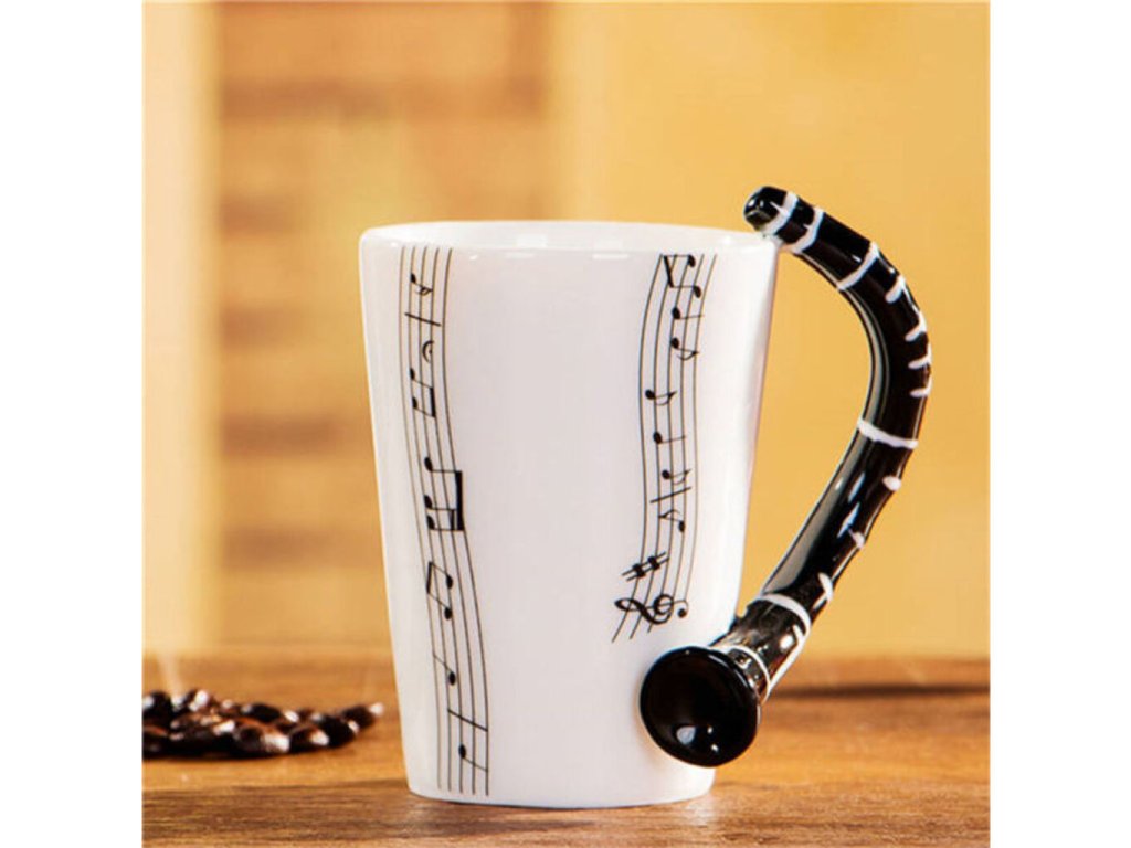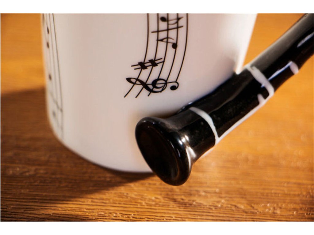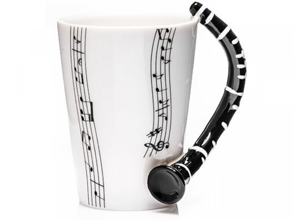 Hrá vo vašom okolí niekto na klarinet? V tom prípade máme pre vás inšpiráciu na skvelý darček. Pre každého milovníka hudby je tu tento originálny porcelánový hrnček s čiernym uškom v tvare klarinetu a s čiernou notovou potlačou. Rána pri šálke kávy teraz získajú novú, hravú príchuť a každý dúšok bude inšpiratívny ako melodická hudba. Hrnček klarinet ocení ako originálny darček každý milovník skvelej hudby a lahodnej kávy alebo iného horúceho nápoja.