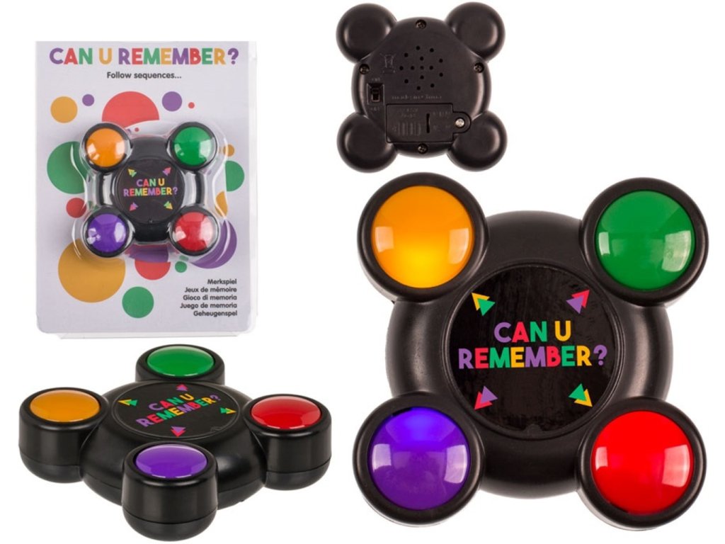 Hra Memory Test with Light je vzrušujúca elektronická hra s jasnými svetlami! Hráči opakujú náhodné sekvencie blikajúcich svetiel stláčaním farebných podložiek v správnom poradí. Spoločenská hra na testovanie pamäti precvičí pamäť a pozornosť nielen detí, ale aj ich rodičov alebo seniorov. Dokážete si zapamätať farby v určitom poradí? Hra začína v pomerne stabilnom tempe, ale s pribúdajúcimi minútami a zrýchľujúcim sa tempom sú svetelné sekvencie čoraz komplikovanejšie, čo sťažuje jej sledovanie.