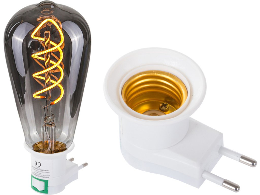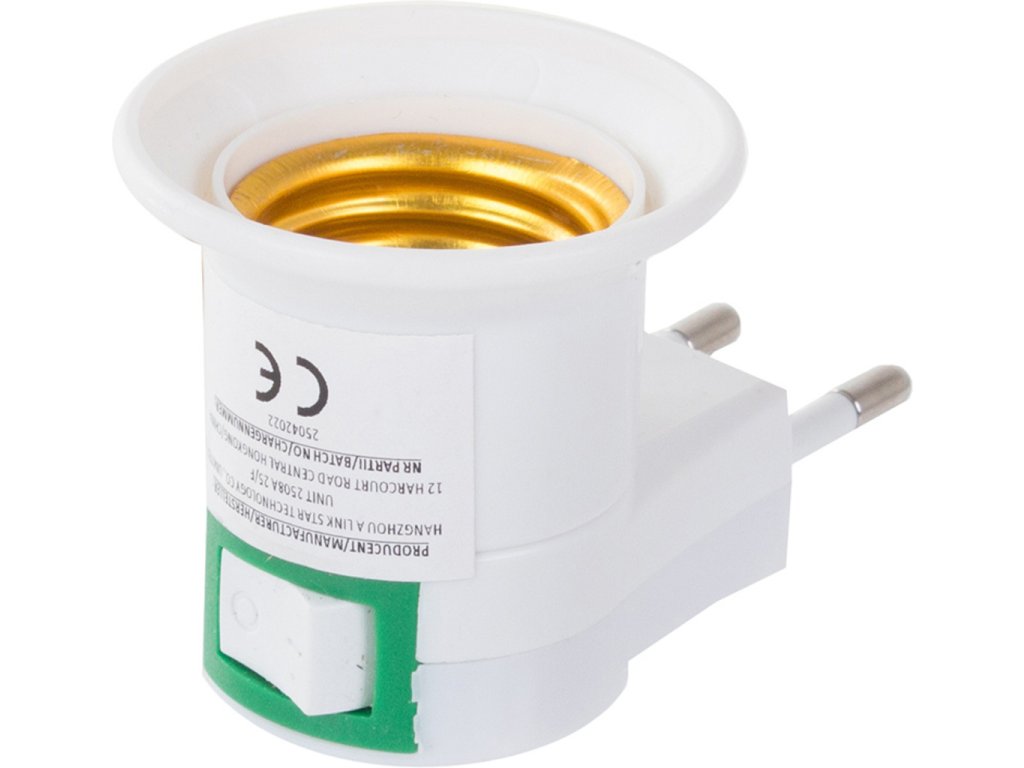 Univerzálny adaptér pre žiarovky E27 montovaný priamo do elektrickej zásuvky. Adaptér je vybavený prepínačom 0/1. Zašraubovať môžete ľubovoľnú žiarovku, ktorá vytvorí atmosférickú atmosféru alebo žiarovku so silným svetlom, potrebnú pre osvetlenie napr. pivnice, garáže a pod.. Adaptér so žiarovkou funguje ako svietidlo s vypínačom.