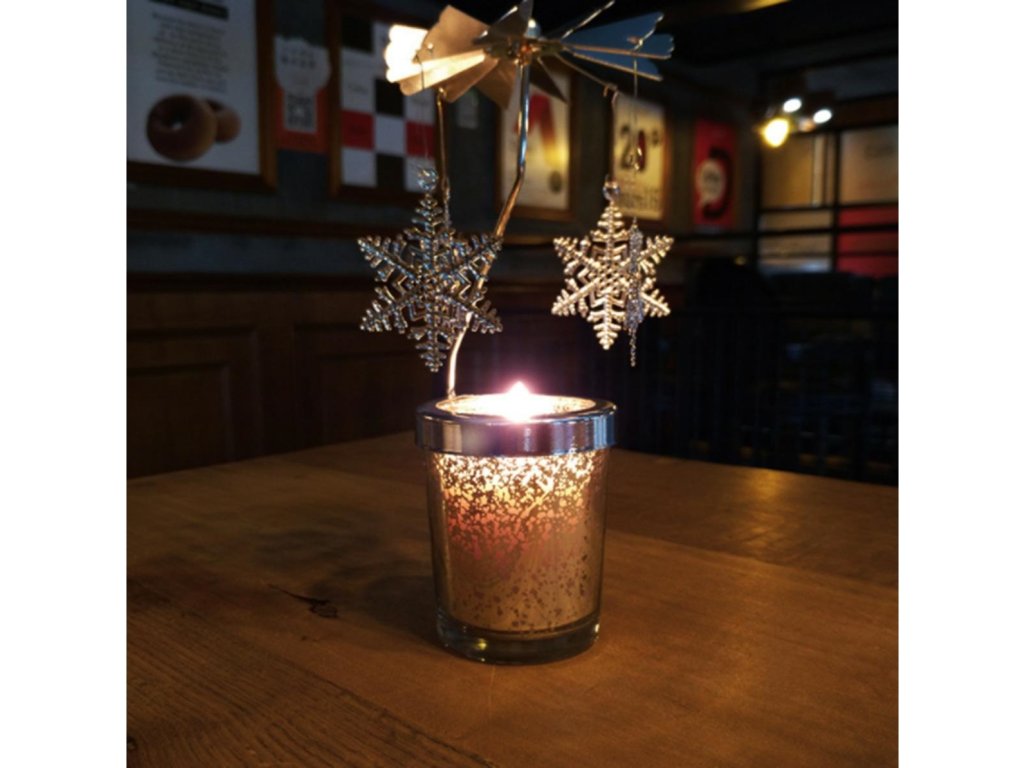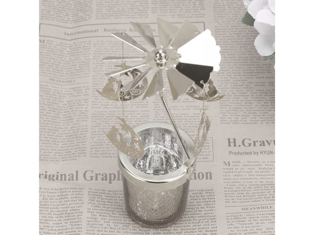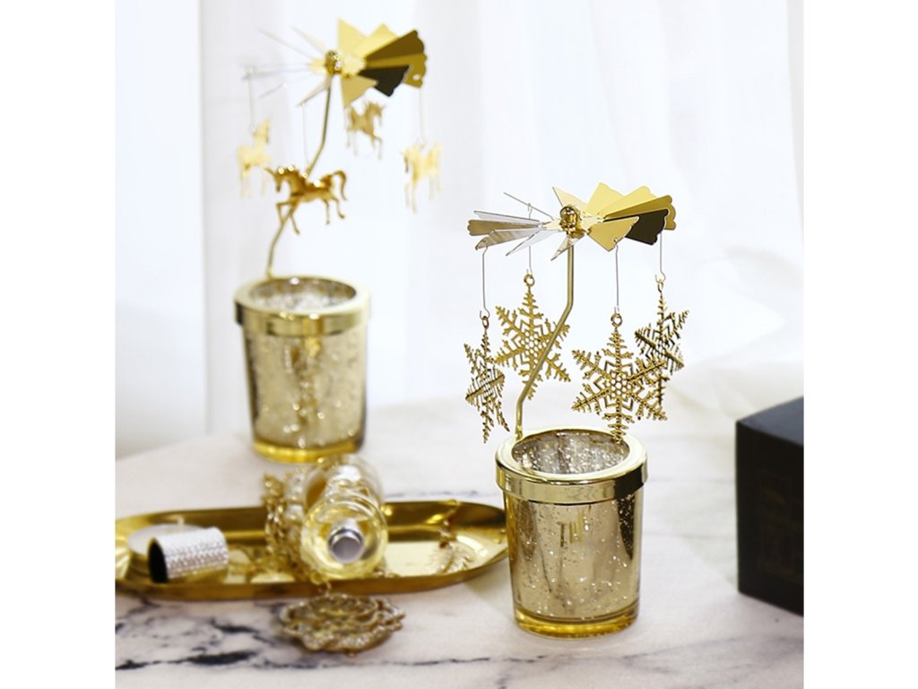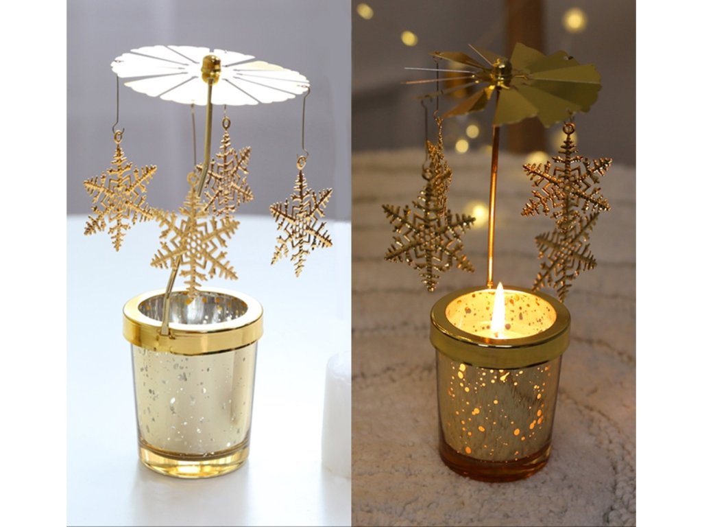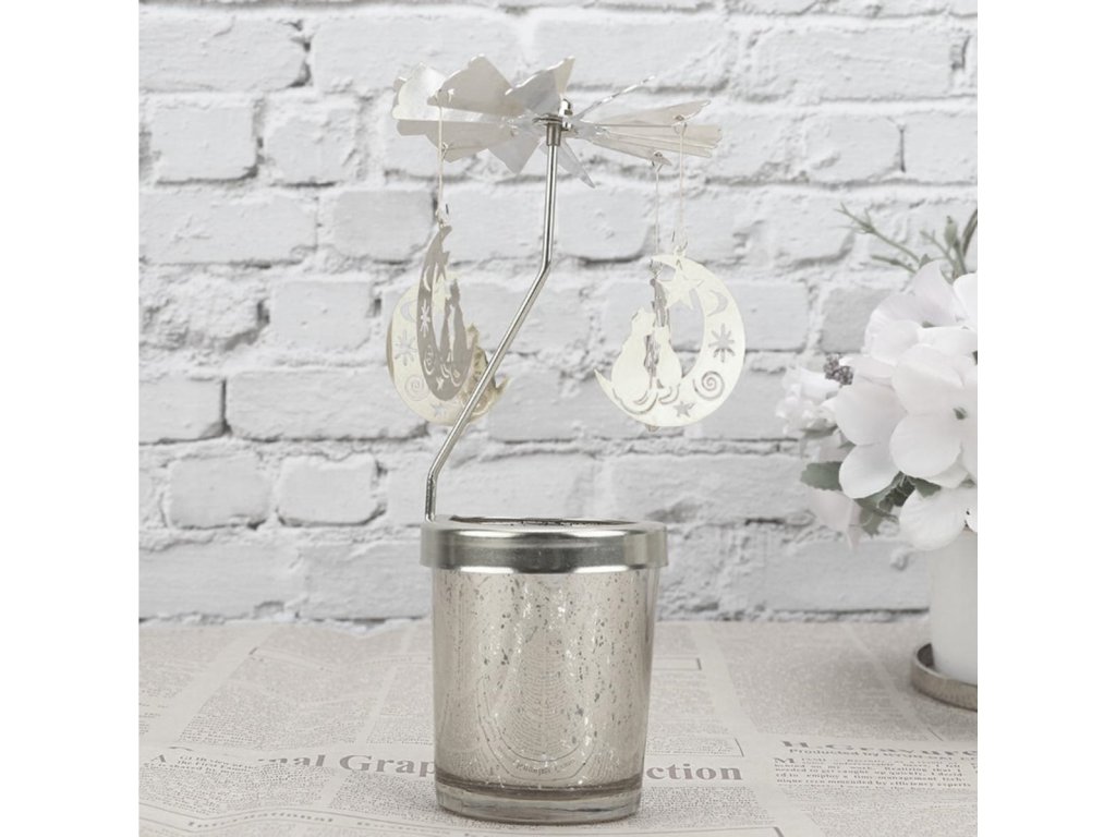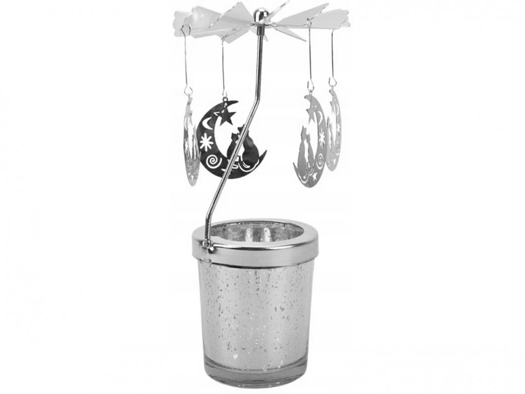 Slávnostný svietnik s kolotočom, na ktorom sú zavesené 4 mesiace na estetickom prívesku, ktorý sa otáča okolo svojej osi. Ozdoby sa automaticky otáčajú pod vplyvom tepla vyžarovaného zo zapálenej sviečky. Lesklé dosky odrážajú svetlo sviečky. Vďaka možnosti umiestnenia na rovný povrch je svietnik dokonalou dekoráciou na slávnostné obdobie. Pri používaní kolotoča ho odporúčame umiestniť na sklenený alebo kovový podstavec a umiestniť ho na voľné miesto.