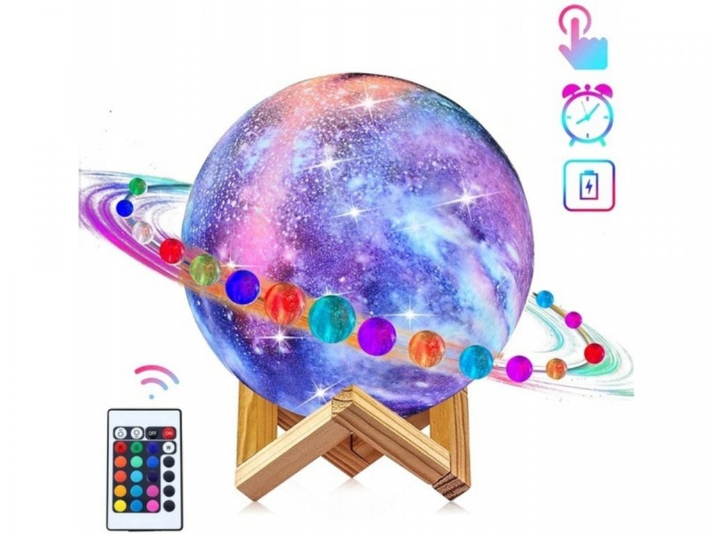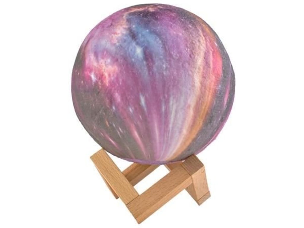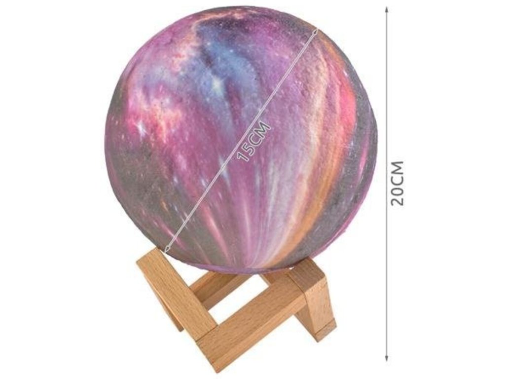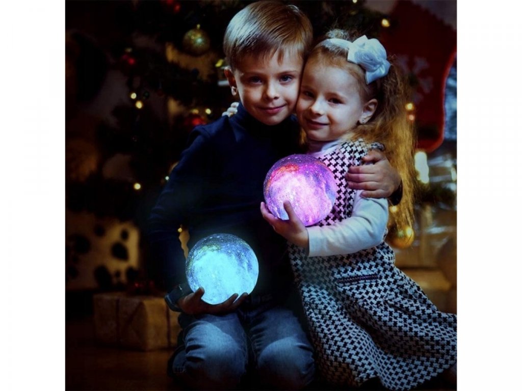 Lampička farebný Mesiac 15cm, 16 farieb bola vyrobená s využitím inovatívnej technológie 3D tlače, vďaka ktorej dokonale napodobňuje náš mesiac. Má hrubú štruktúru a každý kráter na ňom zodpovedá tomu skutočnému. Ak snívate o zaspaní pod jasným, žiariacim mesiacom, táto lampa vám dáva takú príležitosť. Má 16 farieb svetla, 4 režimy, počas ktorých ich lampa automaticky mení a 4 rôzne úrovne jasu. Režimy je možné voliť pomocou praktického diaľkového ovládača alebo dotykom na spodnú časť lampy. Lampa je navyše napájaná cez USB kábel, takže nabíjanie je pohodlné a nie je potrebné batériu vymieňať. (doba nabíjania približne 3 hodiny). Táto dizajnová lampa je ideálna do každého interiéru. Bude to vyzerať pôsobivo v detskej izbe, spálni alebo v obývacej izbe. Môžete ju dať večer na nočný stolík alebo na poličku nad ním, a keď svieti, v miestnosti prevládne jedinečná atmosféra. Imitácia mesiaca bola vyrobená z ekologického materiálu bez zápachu, ktorým je polyaktíd. Je plne biologicky rozložiteľný. Získava sa z obnoviteľných surovín, ako je kukuričná múčka. Nemá nepriaznivý vplyv na zdravie a jeho svetlo a intenzitu je možné upraviť podľa vašich predstáv. Z tohto dôvodu je tiež skvelý pre izbu najmladších obyvateľov domácnosti.