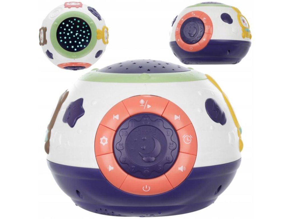 Nočné LED osvetlenie 3v1 je očarujúce príslušenstvo. Svetlo je kombináciou 3 nevyhnutných zariadení, ktoré by mali byť v každej detskej izbe: nočná lampička, projektor a hudobná skrinka. Jeho zaoblené tvary a hladké hrany umožnia lampu bezpečne umiestniť do detskej izby bez toho, aby dieťa bolo ohrozené. Je celé vyrobené z plastu, vďaka čomu je odolné a nerozbije sa. Multifunkčný projektor má až 4 prevádzkové režimy. Vydáva zvuky zvierat, ako je žaba, vták, čajka, vážka a zvuky prírody, napríklad: les po súmraku, potok, dážď, vodopád. Zariadenie môže tiež prehrávať ľahké klavírne melódie: Jarné kvety, spomienky z detstva, malé hudobné dieťa a až 8 rôznych uspávaniek. To všetko je možné zmeniť jediným tlačidlom na extrémne ľahko použiteľnom paneli. Nočná lampička má vstavaný časovač, vďaka ktorému nemusíme vstupovať do detskej izby, aby sme ho vypli, keď dieťa zaspí. Stačí stlačiť tlačidlo s namaľovaným budíkom. Jedným stlačením je 30 minút, dvoma stlačením 60 minút a tretím stlačením obnovíte nastavenie časovača. Vďaka tejto lampe bude vaše dieťa pokojne spať. Relaxačné zvuky, hviezdy vyčnievajúce na strop a steny a piesne príjemné pre ucho zaspí rýchlo a bez problémov. Zaujímavou funkciou je tiež možnosť nahrávať hlas. Neopustíte svoje dieťa v noci v starostlivosti inej osoby môžete nahrávať späť obľúbené uspávanky. Vďaka tomu, keď sa dieťa prebudí, bude počuť váš hlas.
