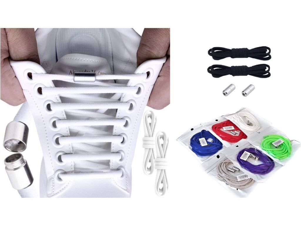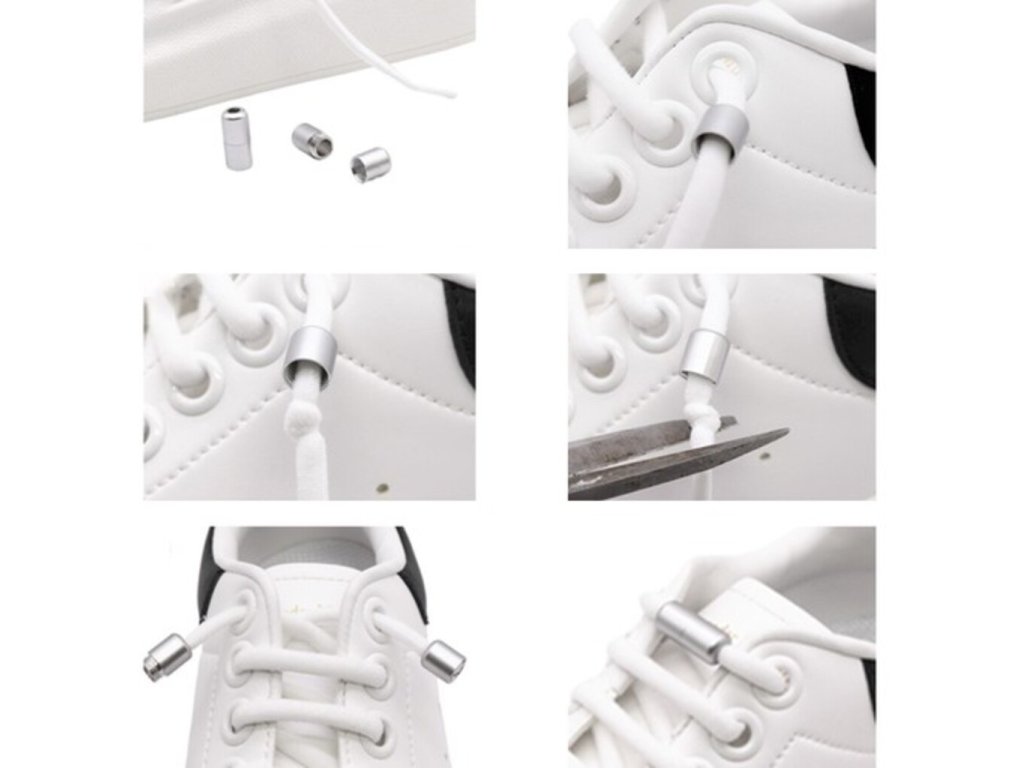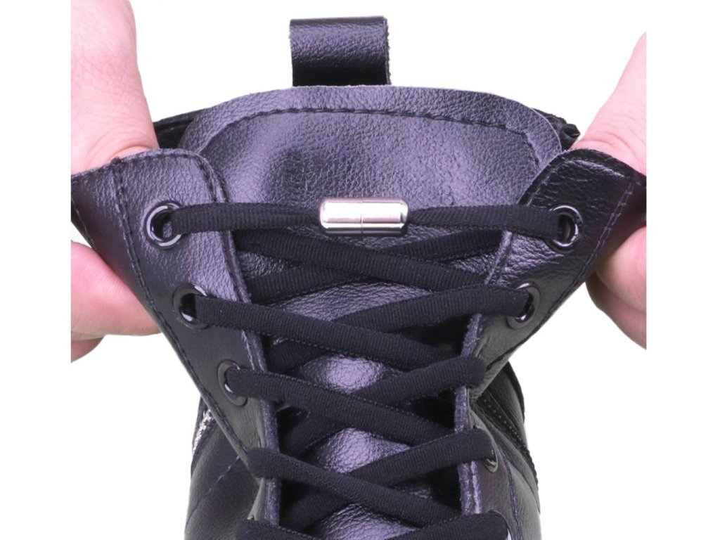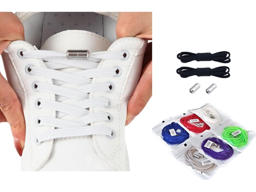 Elastické šnúrky s kovovým zatváraním sú veľmi pohodlnou alternatívou k tradičným šnúrkam. Vďaka týmto šnúrkam je zaväzovanie topánok jednoduché a rýchle, hodí sa ku všetkým typom topánok so šnurovaním. Žiadna strata času a topánky sa niekoľkokrát nerozviažu pri chôdzi, behu alebo intenzívnom tréningu! Skvelé riešenie pre deti, ktoré ešte neovládajú samostatné zaväzovanie topánok. Elastické šnúrky sú druhom šnúrok, ktoré sú elastické. Vyrobené z pružného materiálu, ktorý umožňuje natiahnutie a prispôsobenie rôznym veľkostiam obuvi . Elastické šnúrky sú obľúbené medzi ľuďmi, ktorí chcú topánky jednoducho a rýchlo obuť a vyzuť, aniž by ich museli zaväzovať. Sú ideálne pre každodenné použitie, ale aj pre šport alebo voľný čas. S istotou môžete cvičiť fitness, beh, triatlon, jógu alebo turistiku. Už nemusíte viazať ani zväzovať šnúrky, čo sa hodí najmä ľuďom, ktorí majú problémy s manuálnym zaväzovaním šnúrok alebo potrebujú rýchlo obuť alebo vyzuť topánky napríklad pri športových aktivitách. Stačí otočiť kovový klip. Tieto šnúrky je možné prispôsobiť veľkosti topánok. Stačí navliecť do otvorov topánok, prejsť cez kovový háčik, nechať 1,5 cm každého, odstrihnúť zvyšok šnúrok, na konci zaviazať slučku a spáliť ju, aby sa neodpálila, a nakoniec priskrutkovať kovový uchytávadlo.