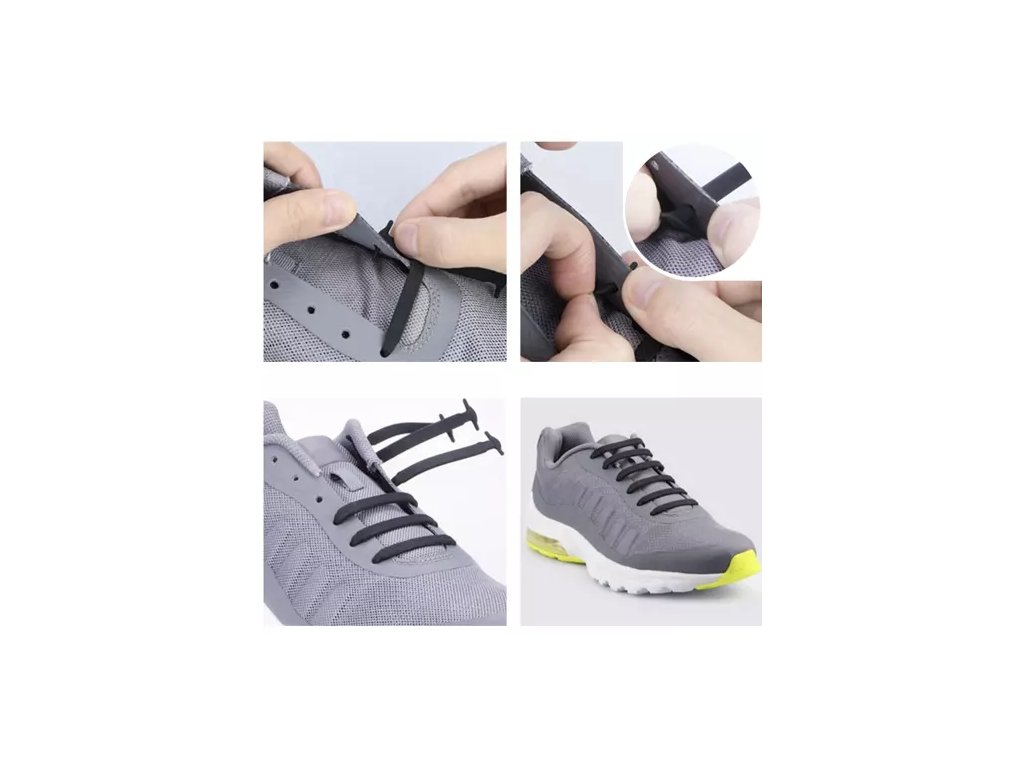 Silikonové šnúrky s kovovým zapínaním sú veľmi pohodlnou alternatívou k tradičným šnúrkam. Vďaka týmto šnúrkam je zaväzovanie topánok jednoduché a rýchle, hodí sa ku všetkým typom topánok so šnurovaním. Žiadna strata času a topánky sa niekoľkokrát nerozviažu počas chôdze, behu alebo intenzívneho tréningu! Skvelé riešenie pre deti, ktoré sa ešte nenaučili samostatne zaväzovať topánky. Silikonové šnúrky sú druhom šnúrok, ktoré sú elastické. Vyrobené z pružného materiálu, ktorý umožňuje natiahnutie a prispôsobenie sa rôznym veľkostiam obuvi . Elastické šnúrky sú obľúbené medzi ľuďmi, ktorí chcú ľahko a rýchlo obúvať a vyzúvať topánky, aniž by ich museli zaväzovať. Sú ideálne pre každodenné použitie, ale aj pre šport alebo voľný čas. S istotou môžete cvičiť fitness, beh, triatlon, jógu alebo turistiku. Nemusia sa zaväzovať ani zaväzovať, čo sa hodí najmä ľuďom, ktorí majú problémy s ručným zaväzovaním šnúrok alebo tým, ktorí potrebujú rýchlo obuť alebo vyzuť topánky napríklad na športové aktivity. Stačí otočiť kovový klip. Tkaničky možno prispôsobiť veľkosti topánky. Stačí navliecť do otvorov na topánky, pretiahnuť kovovou sponou, nechať 1,5 cm každý, odstrihnúť zvyšok šnúrok, na konci zavinúť slučku a vypáliť, aby sa nerozpáral, a nakoniec prišróbovať kovový úchyt.