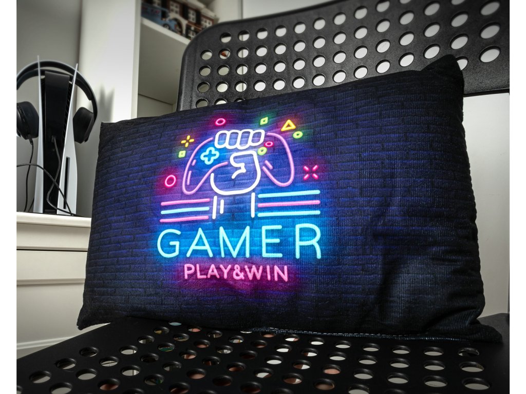 Vankúš Gamer Play&Win prináša nielen pohodlie, ale aj štýl priamo do vášho herného kútika! Jeho čierny základ dopĺňa neónový dizajn inšpirovaný videohrami s motívom ovládača a energickým nápisom „Play&Win“. Tento vankúš je ideálnou voľbou pre každého hráča, ktorý si chce užiť dlhé herné seansy s maximálnym komfortom a zároveň zdôrazniť svoju vášeň pre gaming. Vankúš Gamer Play&Win skvele doplní herný setup, najmä ak používate RGB osvetlenie. Vankúš Gamer Play&Win je nevyhnutný doplnok každého nadšenca do videohier. Doprajte si pohodlie a ukážte svoju hernú vášeň!